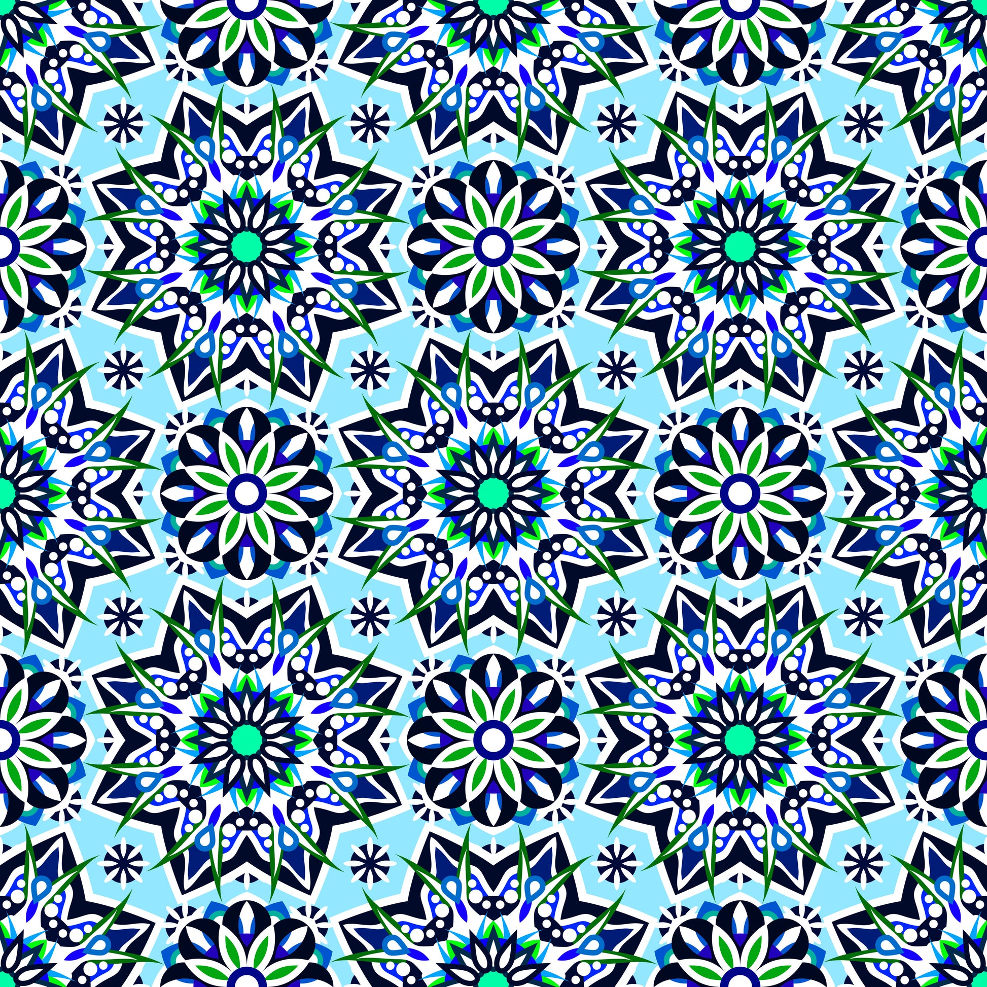 Turquoise - Blue - Green Mandala Fabric - 122i