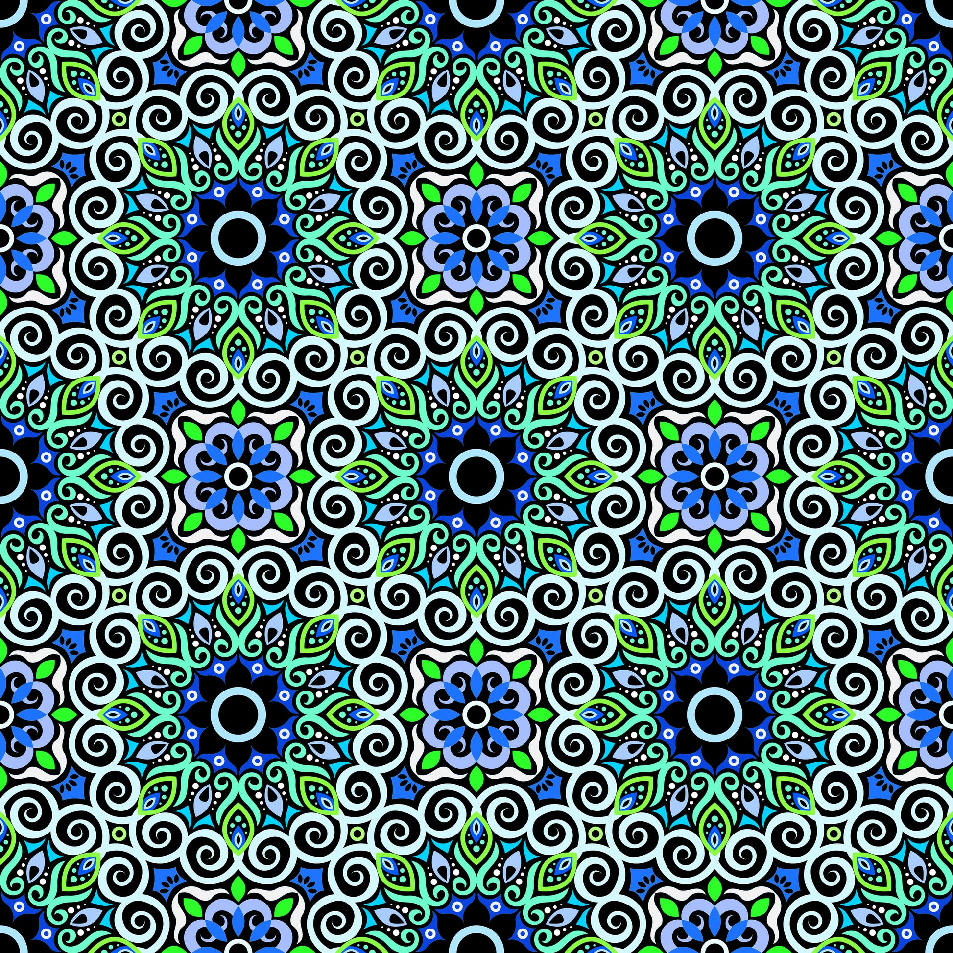 Turquoise - Blue - Green Mandala Fabric - 125
