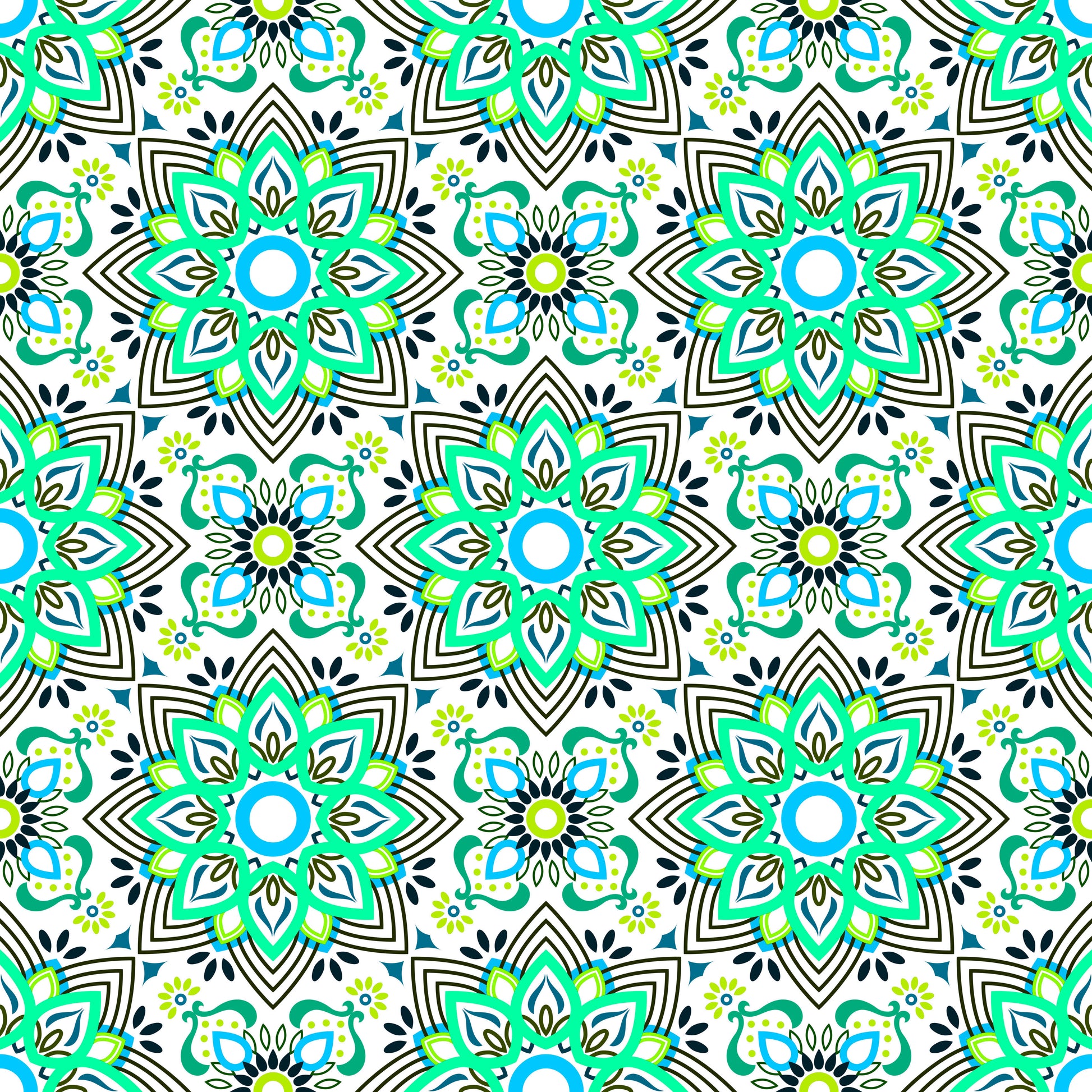 Turquoise - Blue - Green Mandala Fabric - 145i
