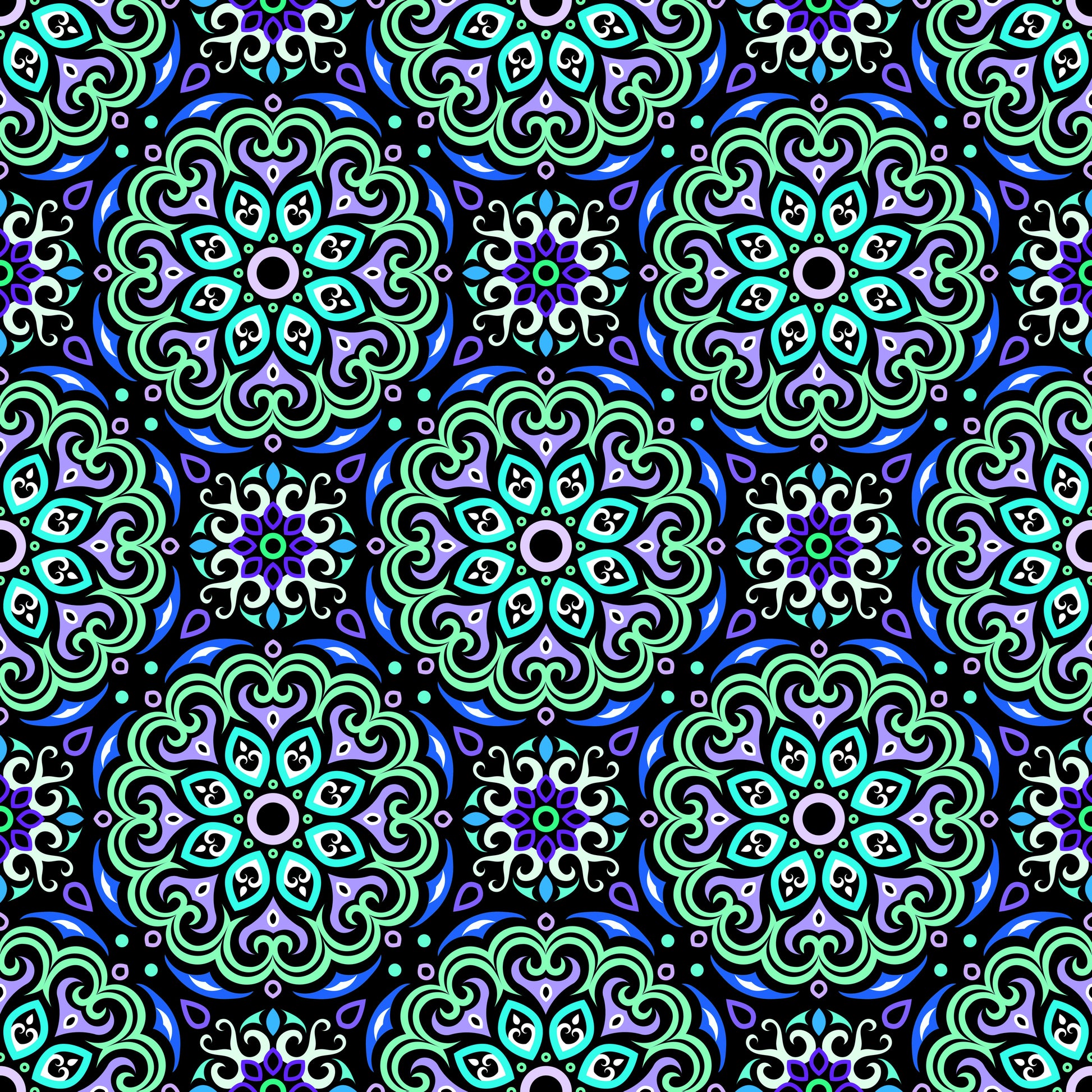 Turquoise - Blue - Green Mandala Fabric - 155