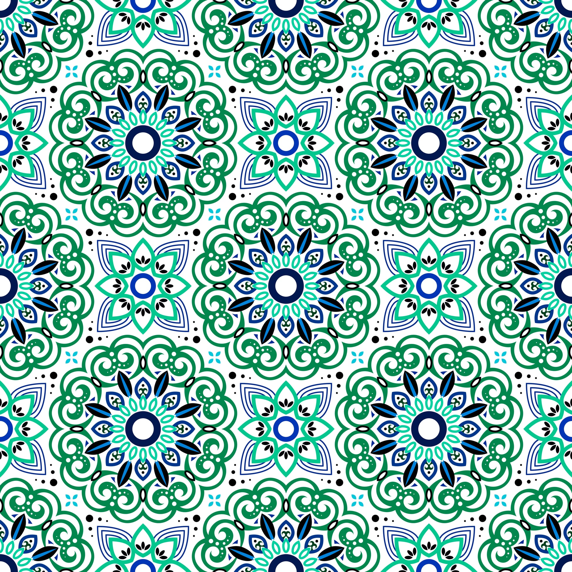 Turquoise - Blue Mandala Fabric - 149i
