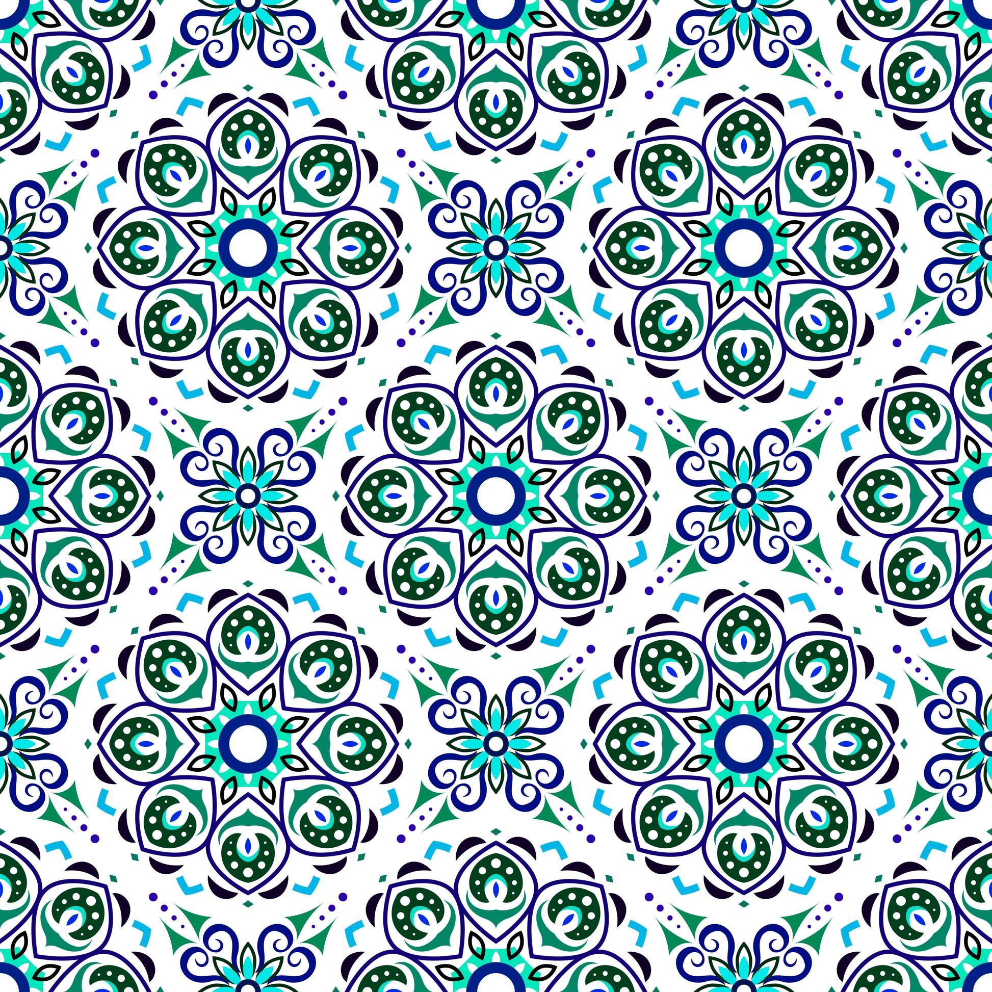 Turquoise - Blue Mandala Fabric - 183i