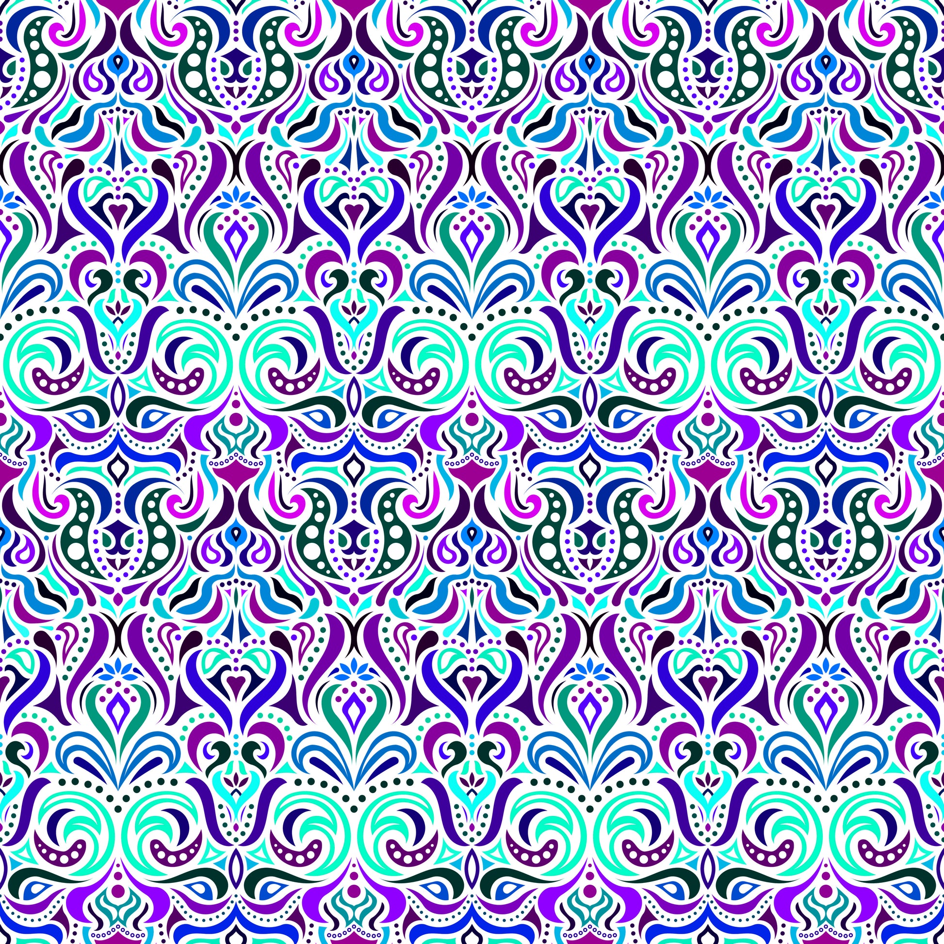 Turquoise - Blue - Purple Abstract Doodle Fabric 1011.4i
