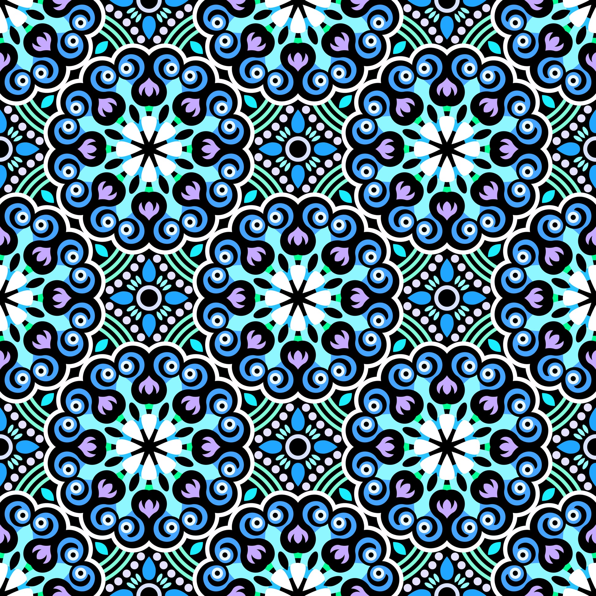 Turquoise - Blue - Purple Mandala Fabric - 132