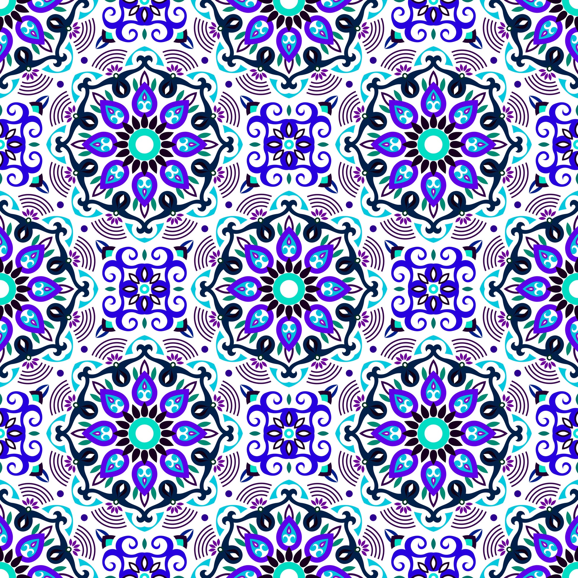 Turquoise - Blue - Purple Mandala Fabric - 140i