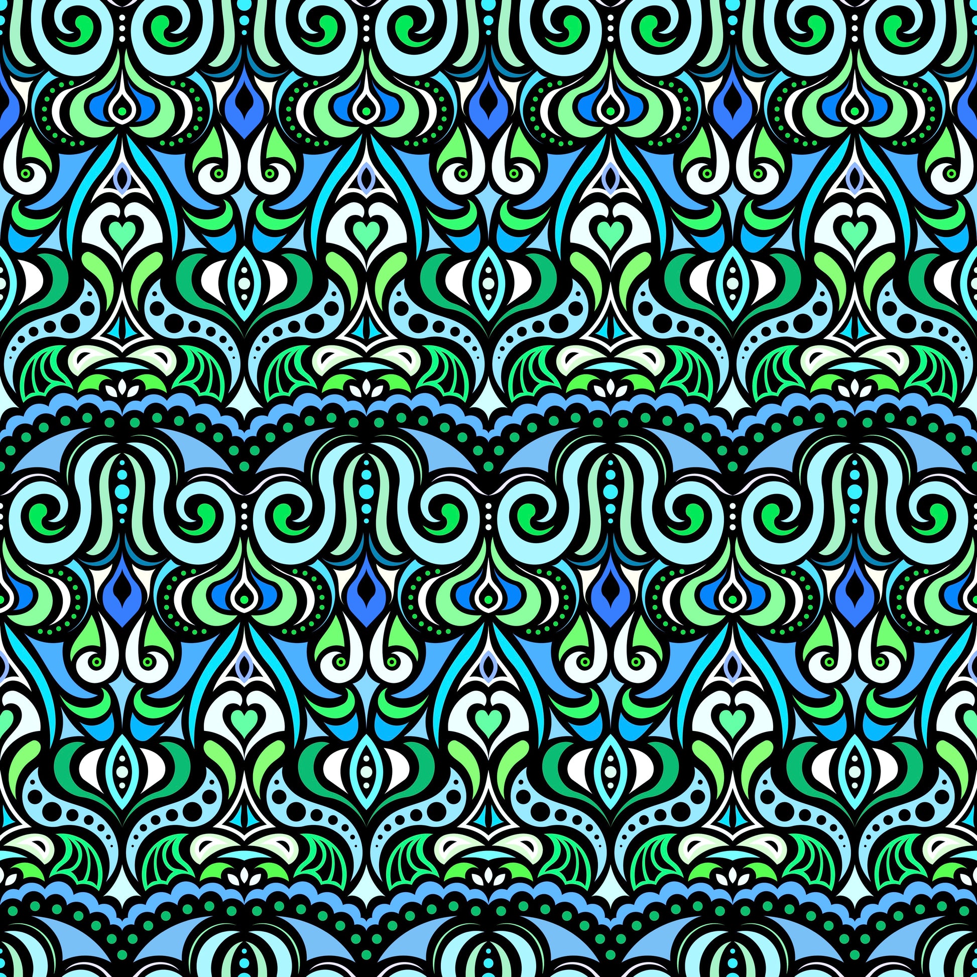 Turquoise - Green - Blue Abstract Doodle Fabric 1010.2