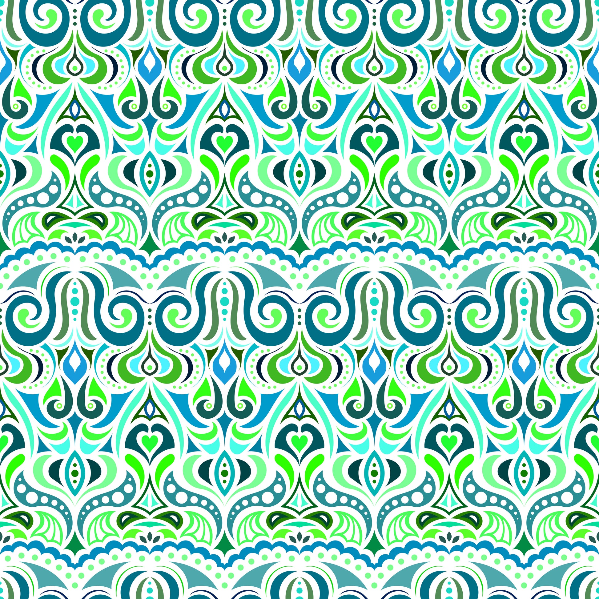 Turquoise - Green - Blue Abstract Doodle Fabric 1010.2i