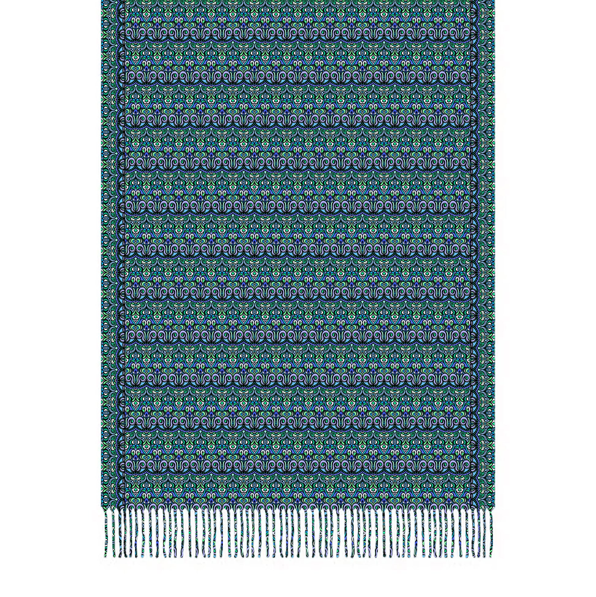 Turquoise - Green - Blue Abstract Doodle Scarf with Tassels