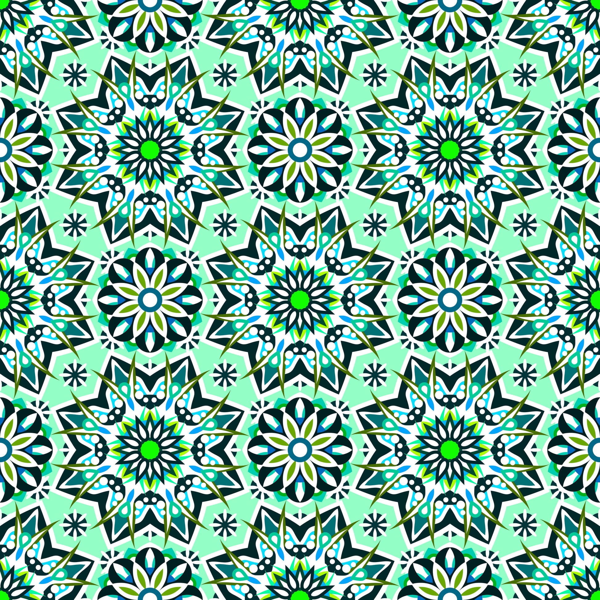 Turquoise - Green - Blue Mandala Fabric - 122i