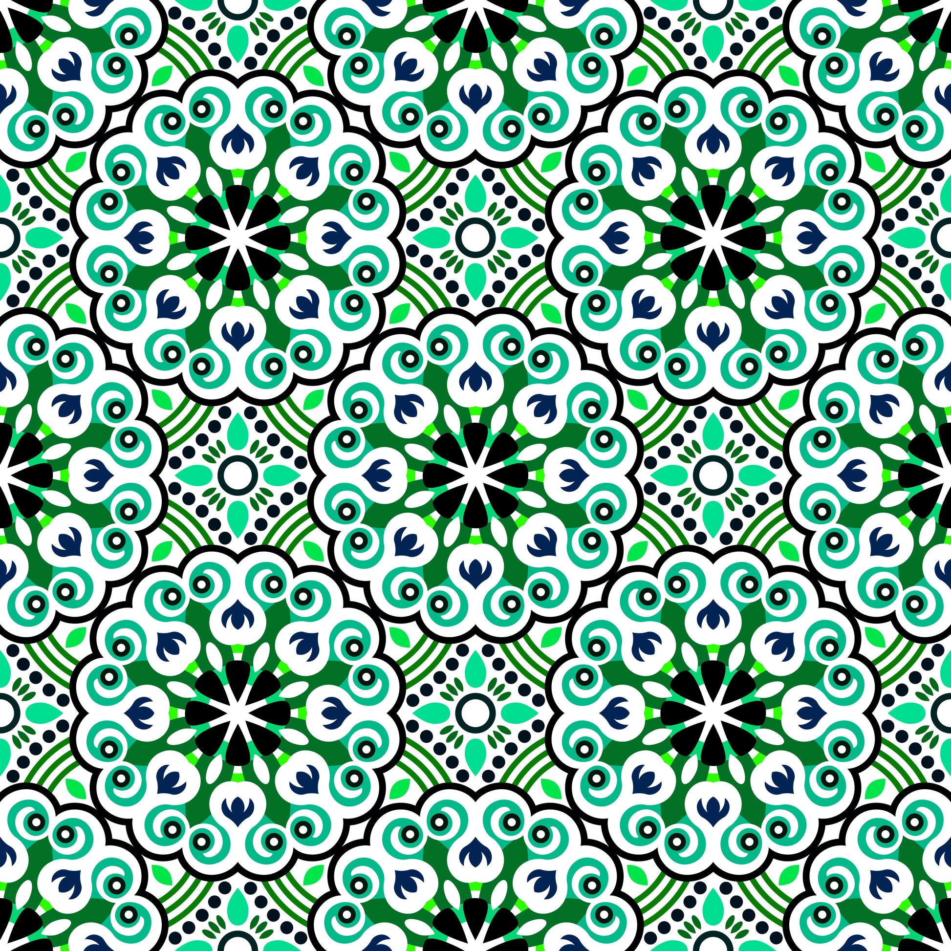 Turquoise - Green - Blue Mandala Fabric - 132i