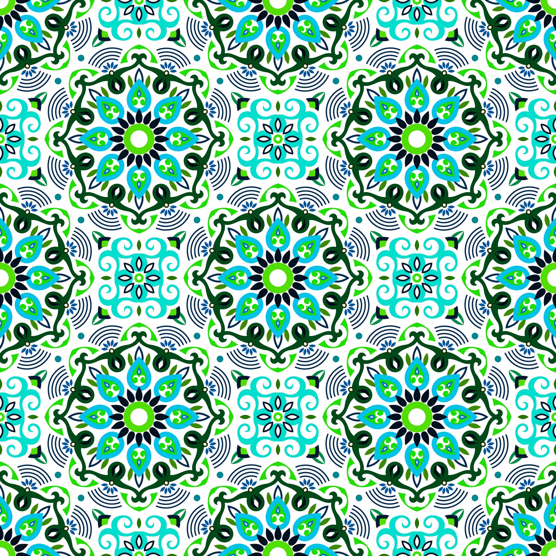 Turquoise - Green - Blue Mandala Fabric - 140i