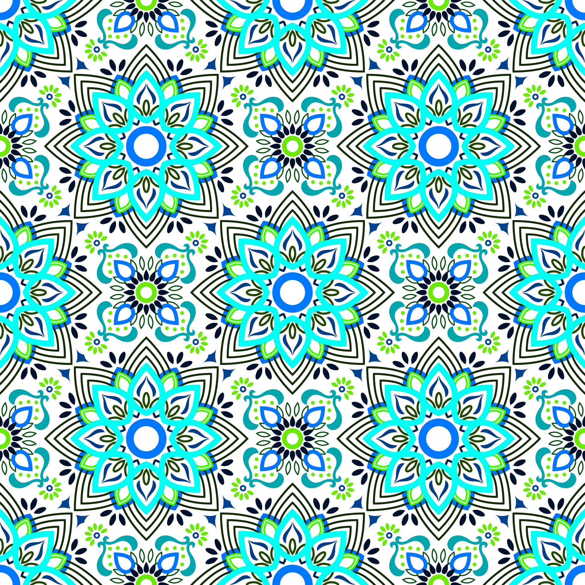 Turquoise - Green - Blue Mandala Fabric - 145i