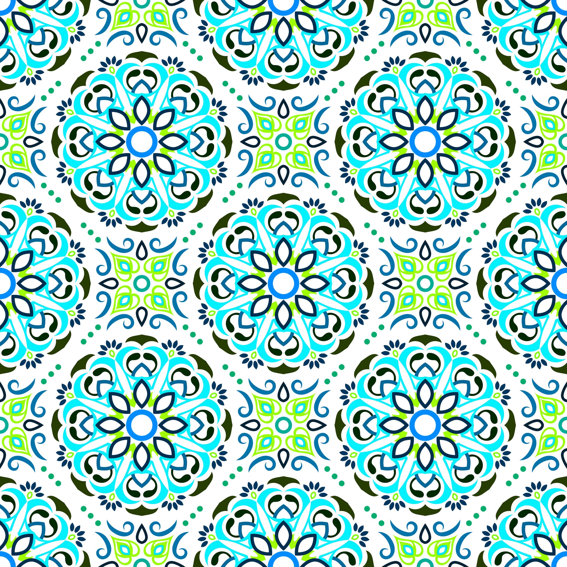 Turquoise - Green - Blue Mandala Fabric - 160i