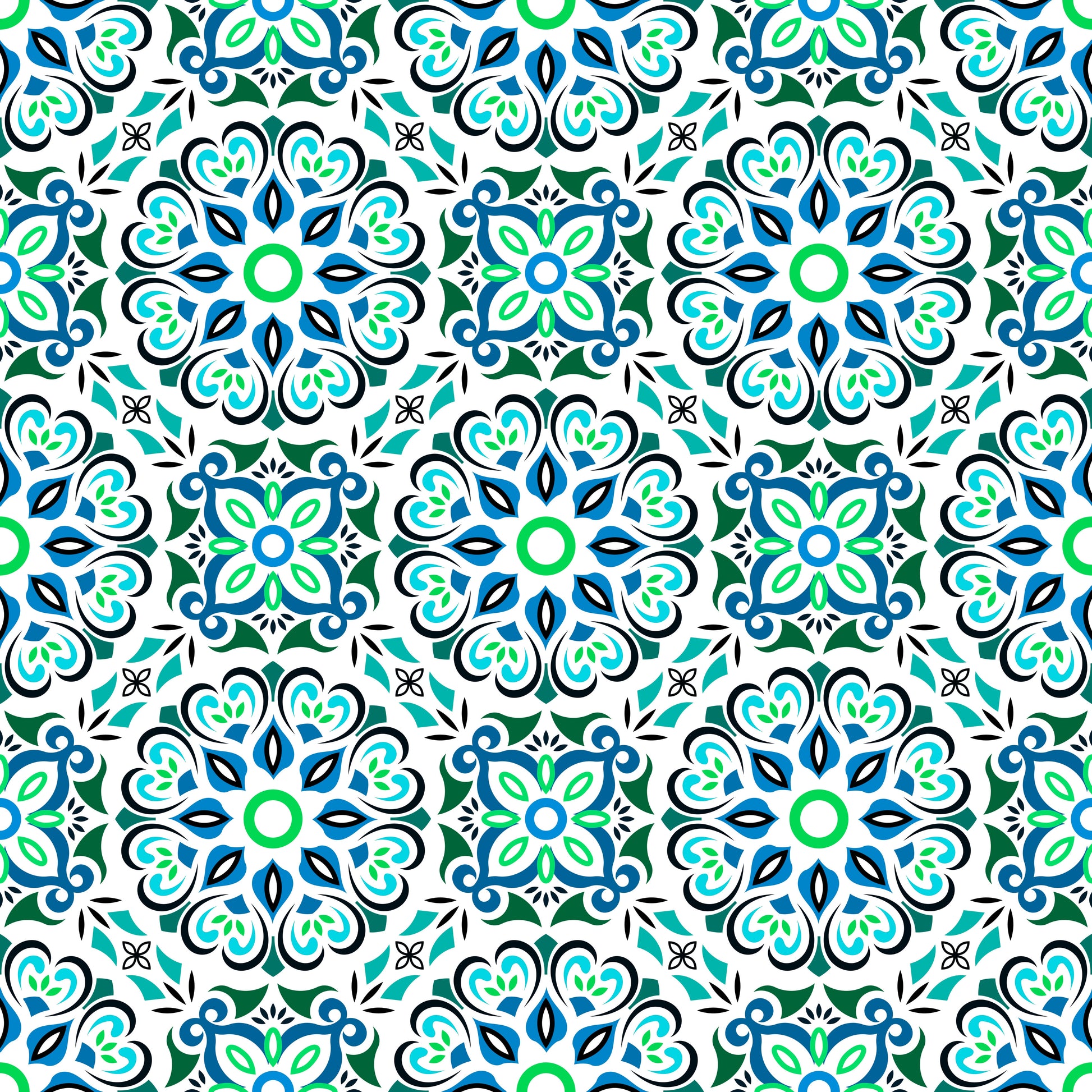 Turquoise - Green - Blue Mandala Fabric - 206i