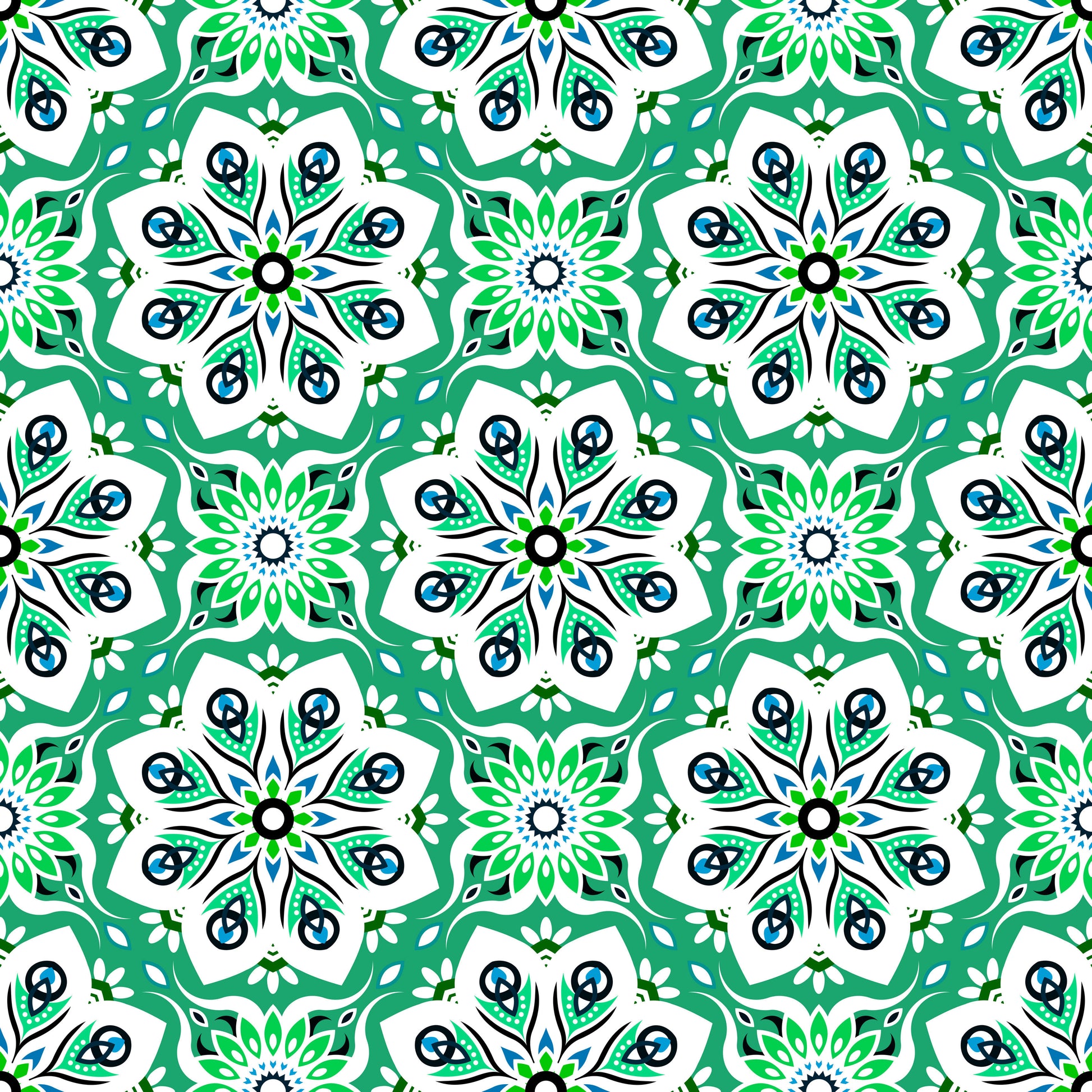 Turquoise - Green - Blue Mandala Fabric - 236i