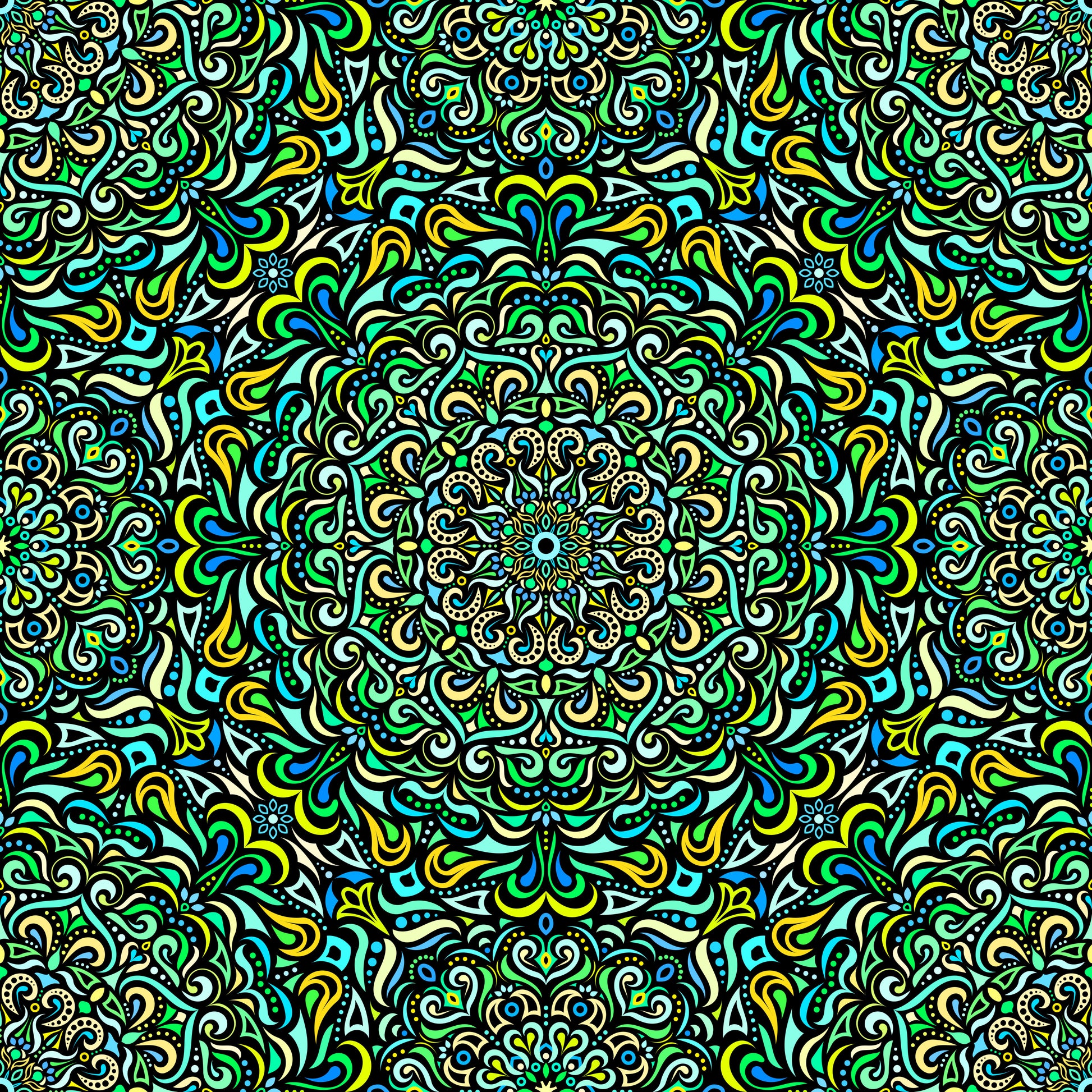Turquoise - Green - Blue - Yellow Mandala Fabric 2005