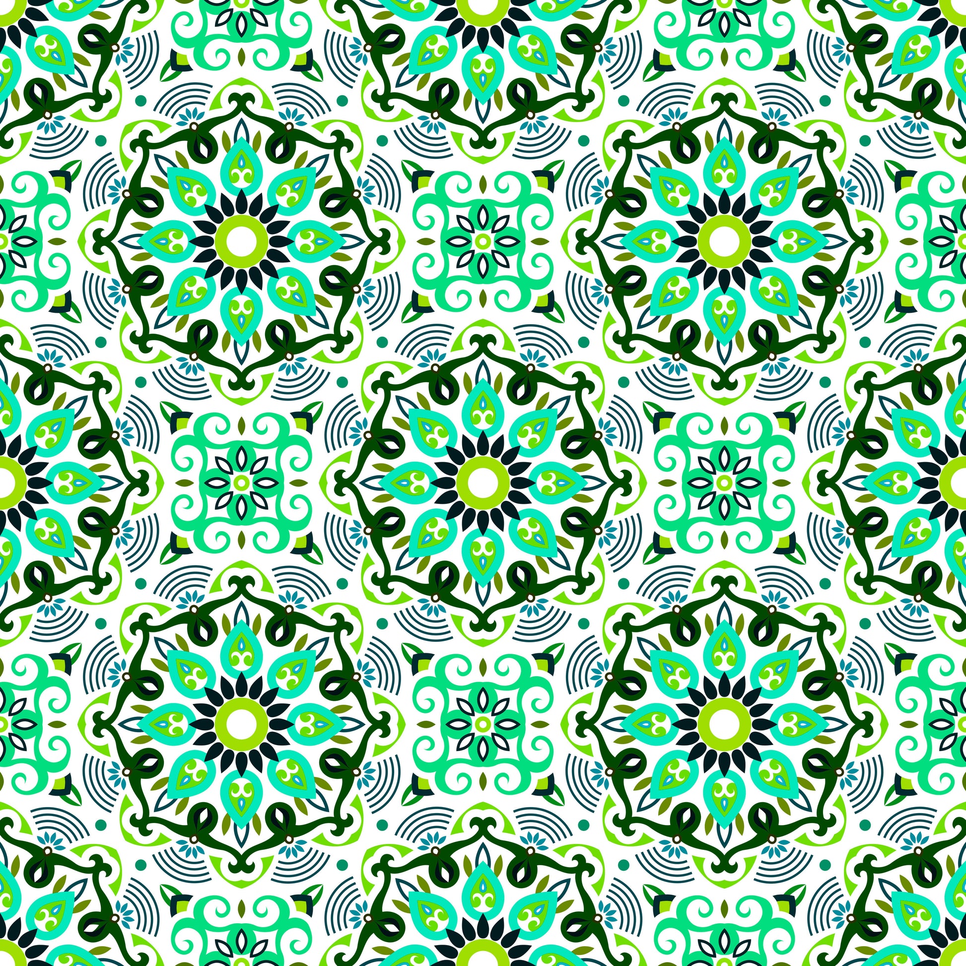 Turquoise - Green Mandala Fabric - 140i