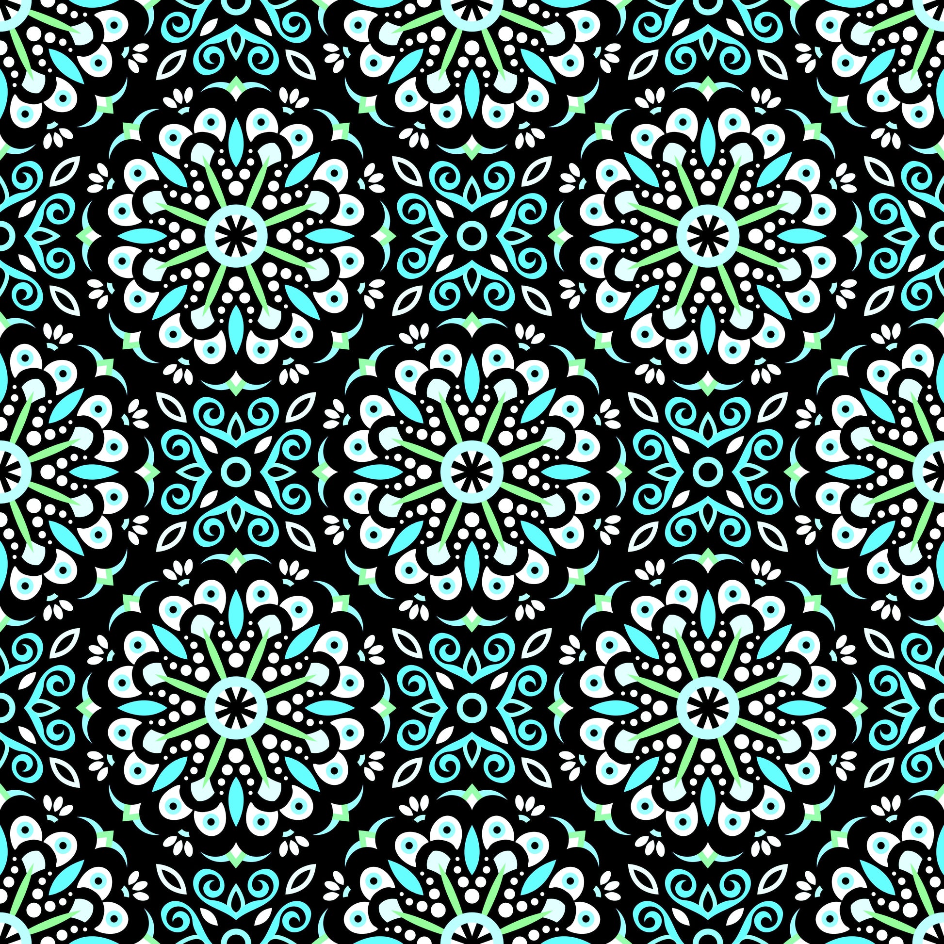 Turquoise - Green Mandala Fabric - 156
