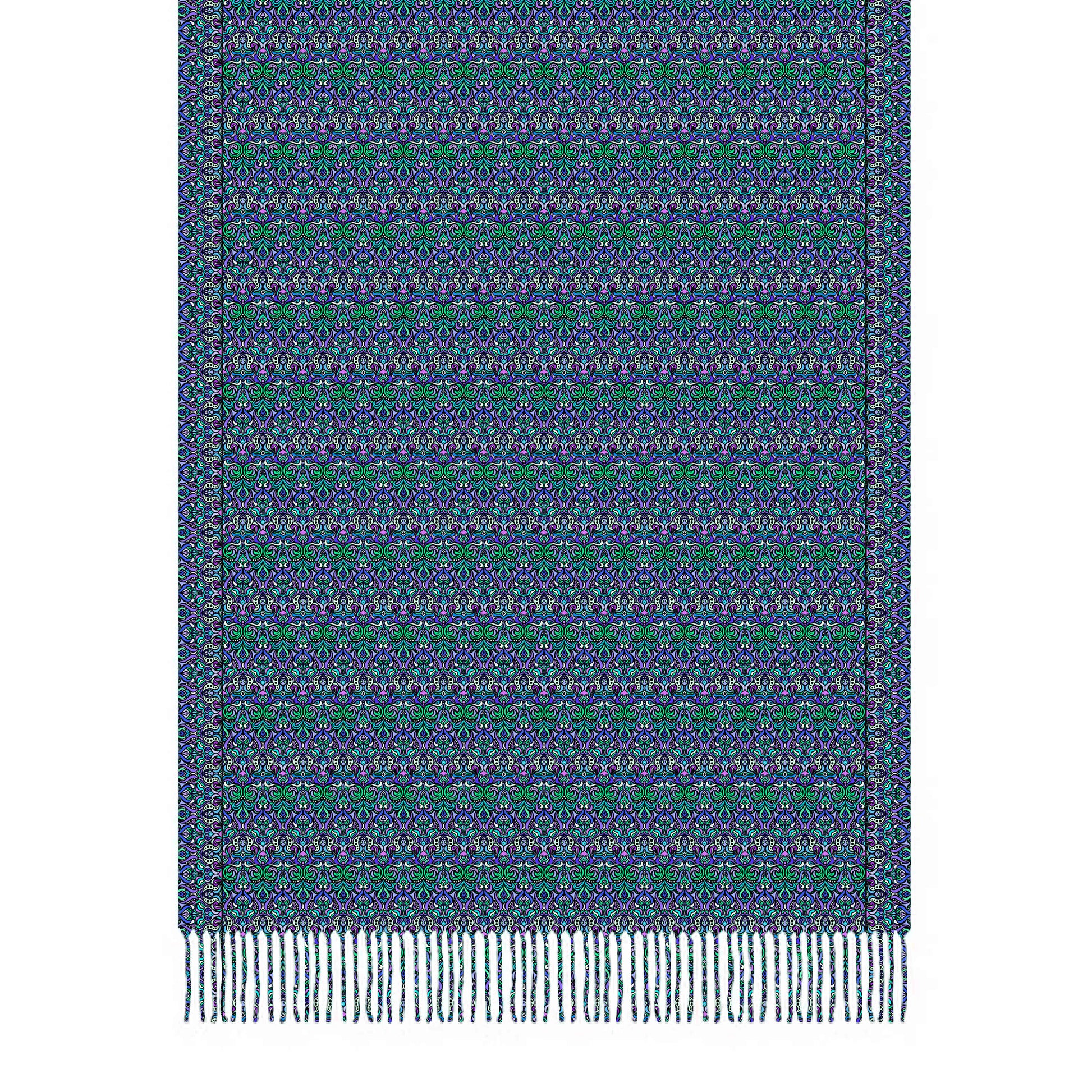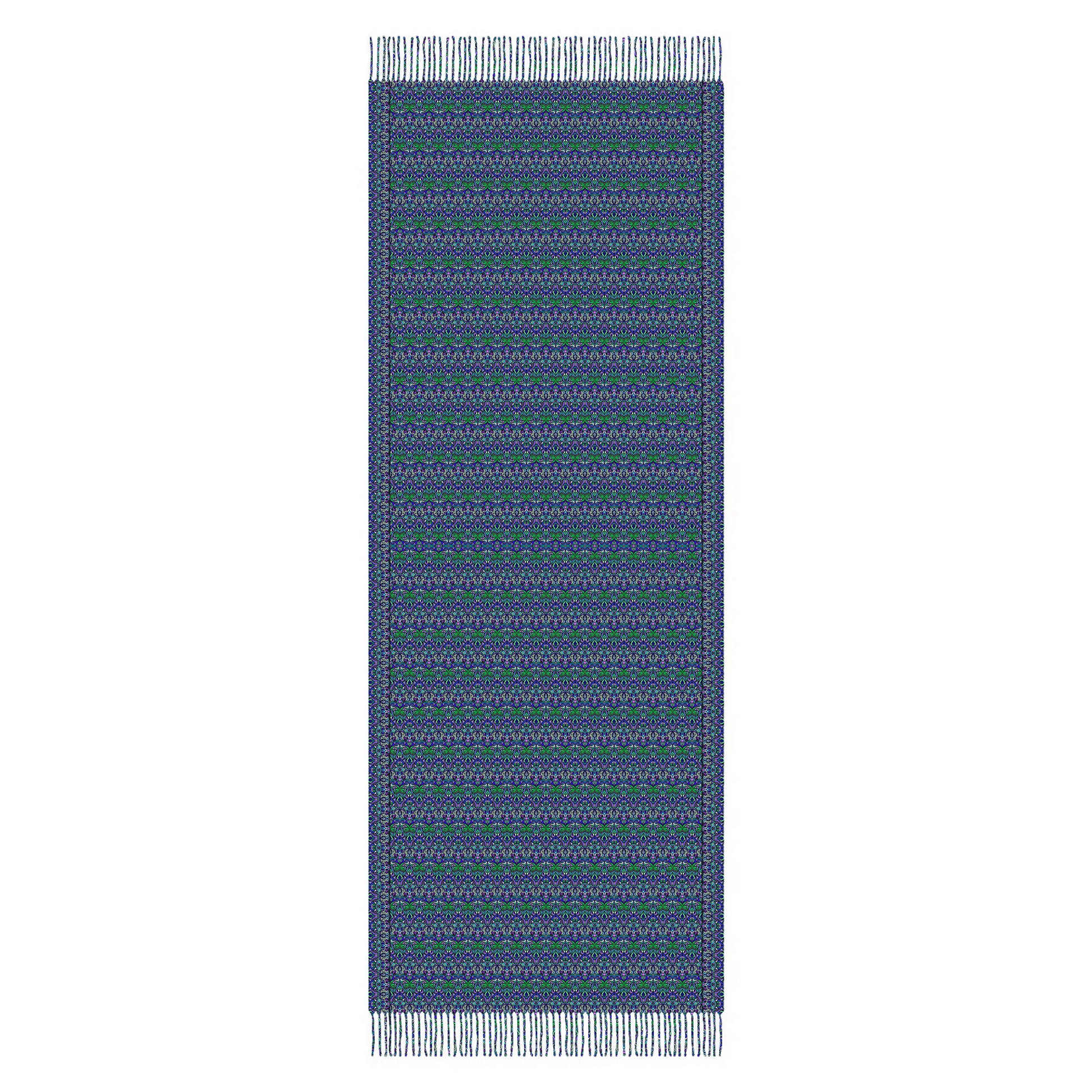 Turquoise - Green - Purple Abstract Doodle Scarf with Tassels