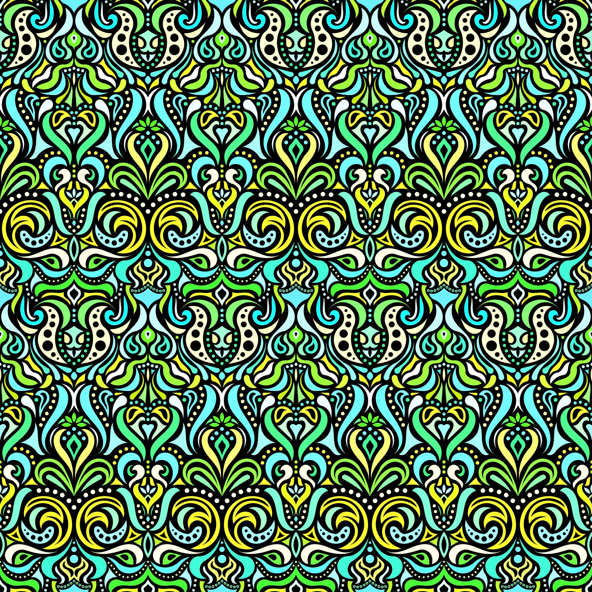 Turquoise - Green - Yellow Abstract Doodle Fabric 1011.4