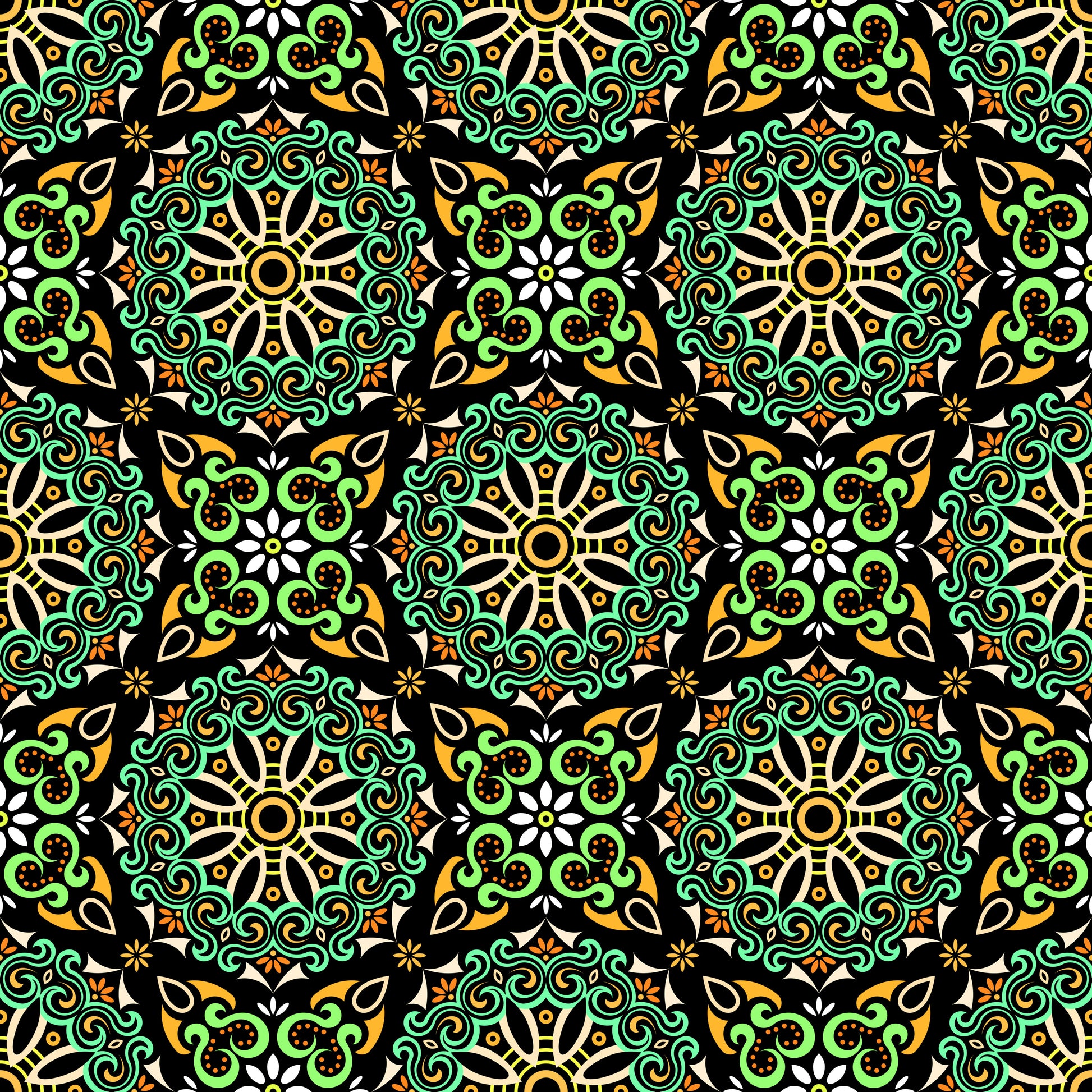 Turquoise - Orange - Green Mandala Fabric - 166