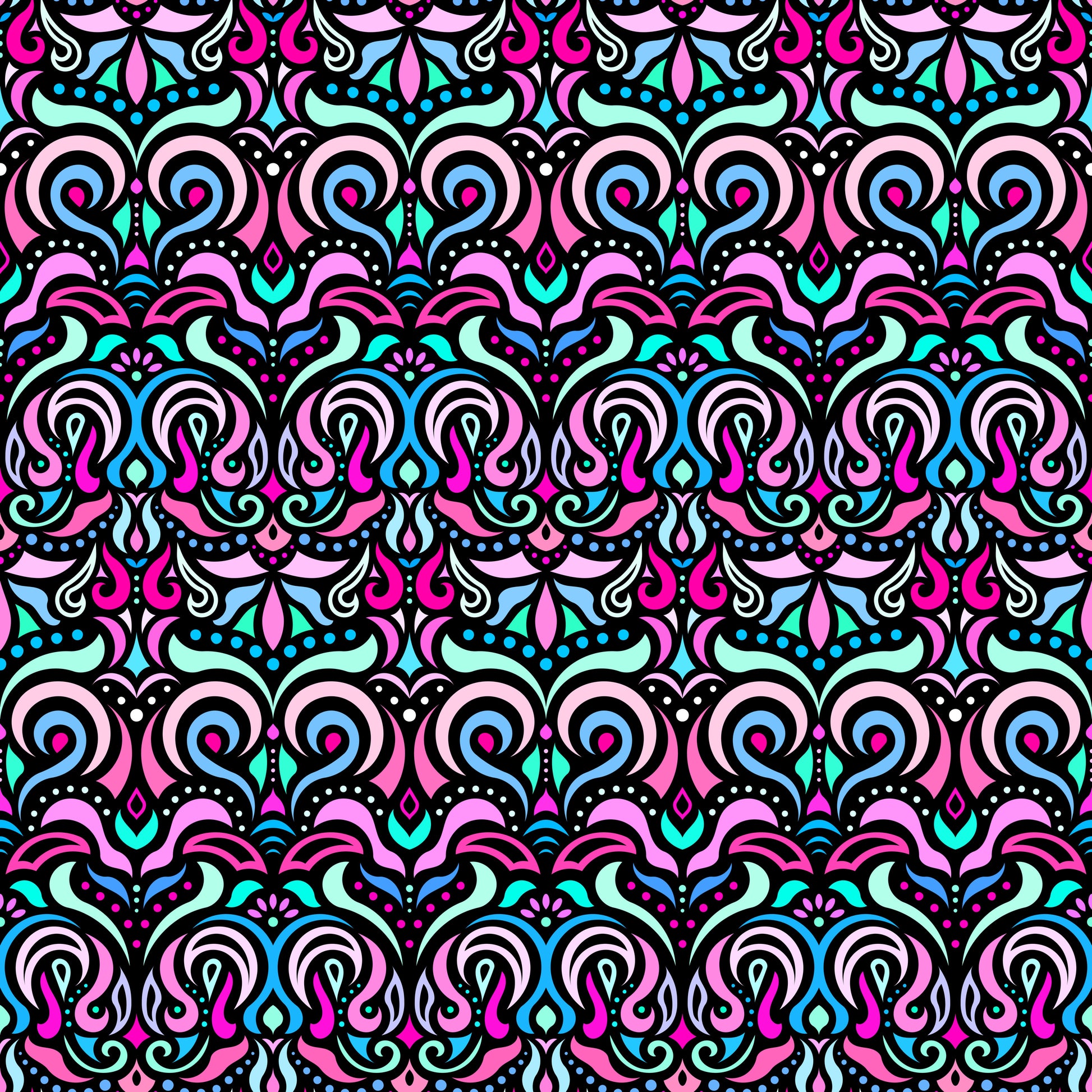 Turquoise - Pink - Blue Abstract Doodle Fabric 1007