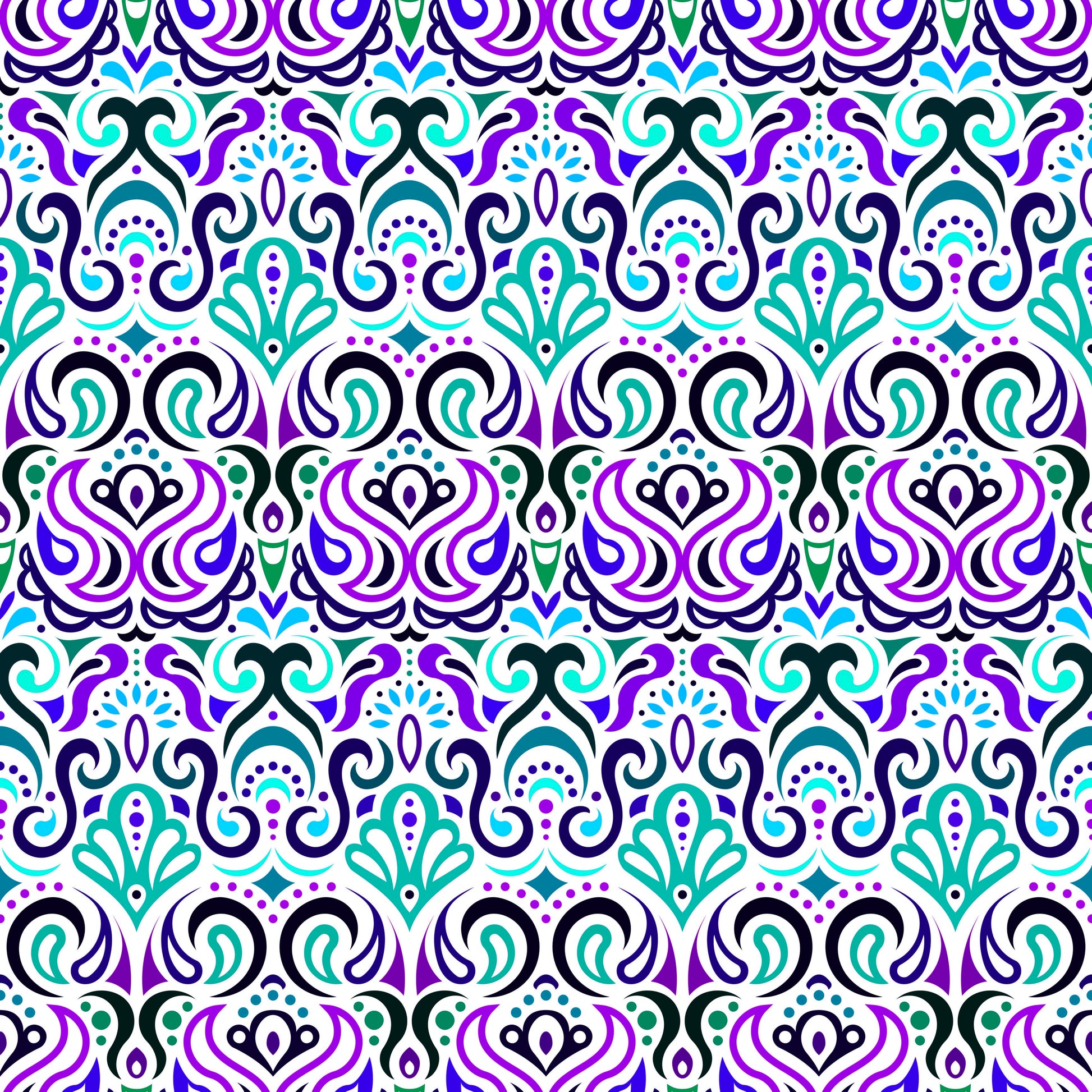 Turquoise - Purple - Blue Abstract Doodle Fabric 1002i
