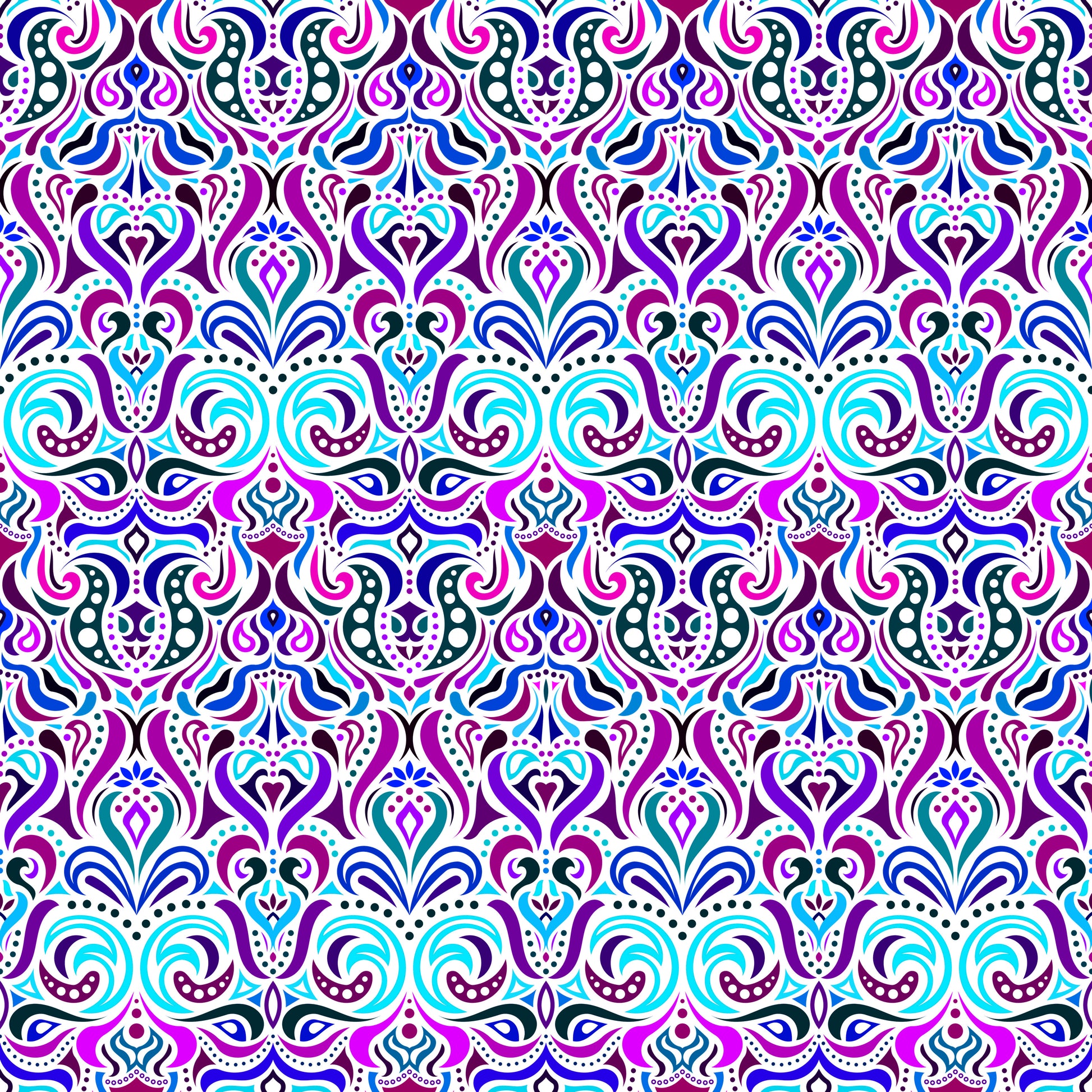 Turquoise - Purple - Blue Abstract Doodle Fabric 1011.4i