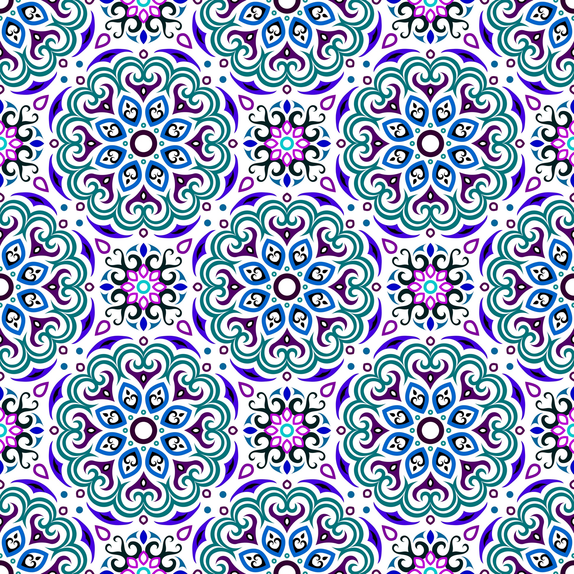 Turquoise - Purple - Blue Mandala Fabric - 155i