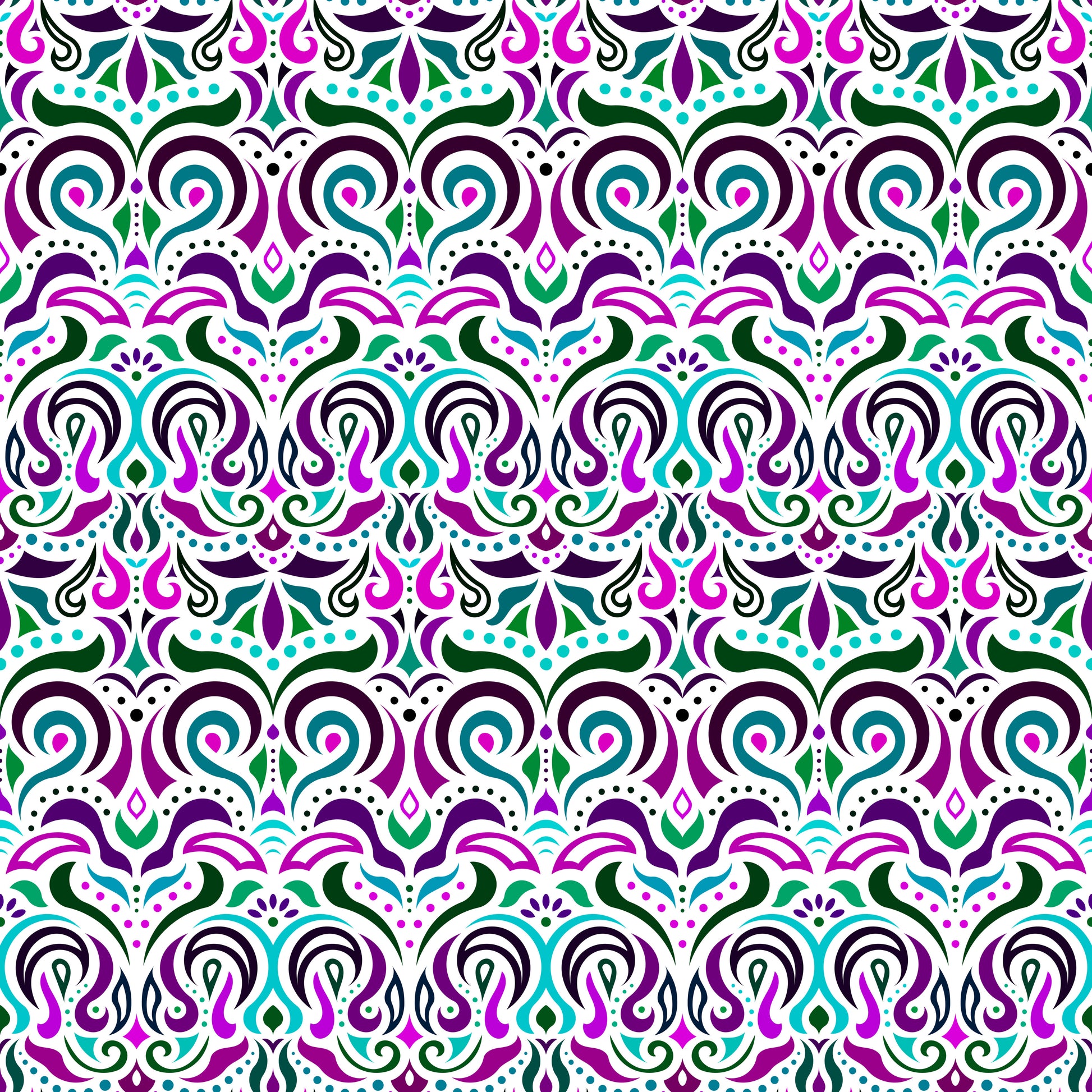 Turquoise - Purple - Green Abstract Doodle Fabric 1007i