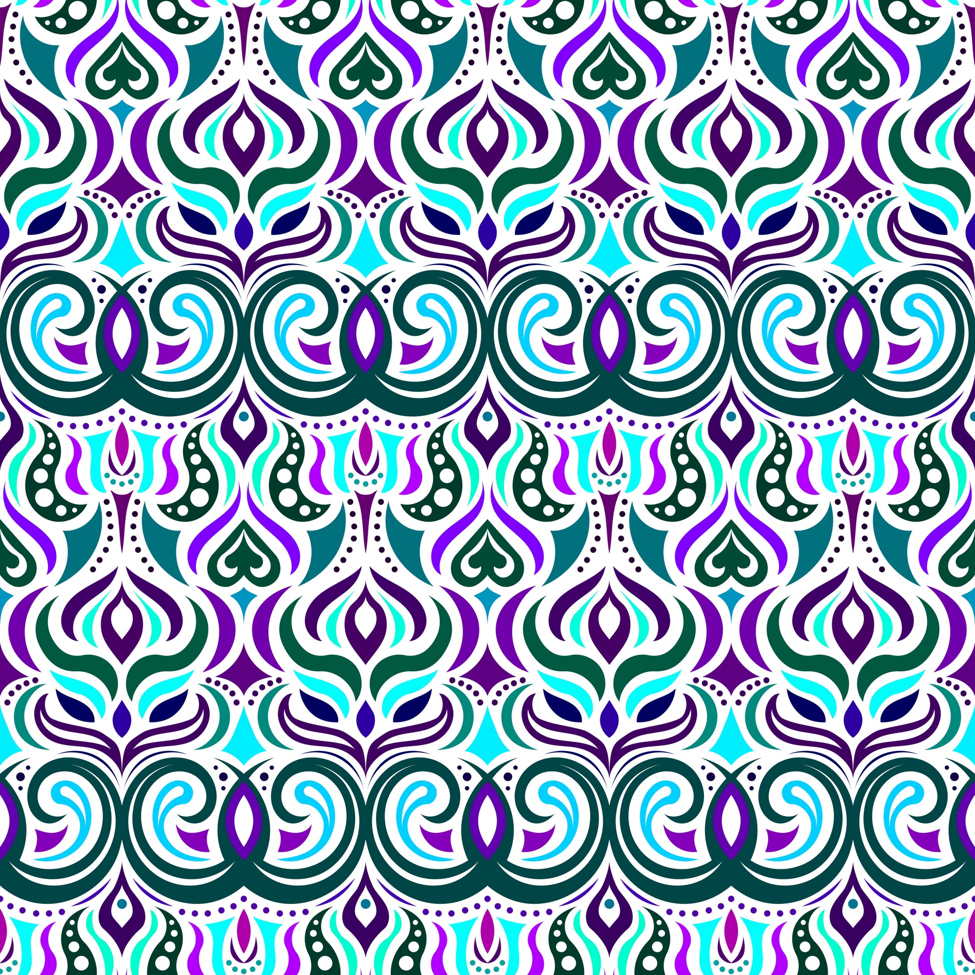 Turquoise - Purple - Green Abstract Doodle Fabric 1009.7i