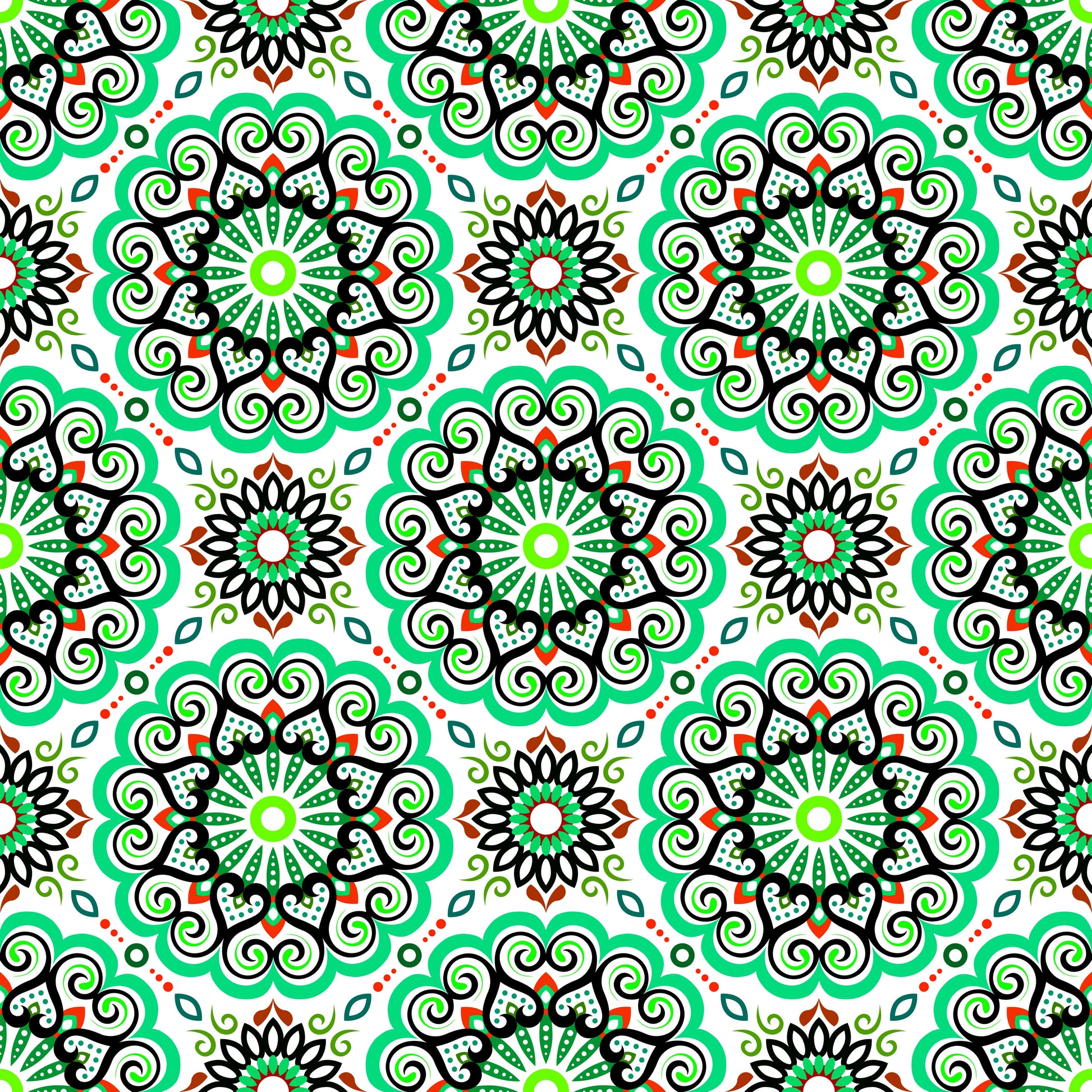 Turquoise - Red - Green Mandala Fabric - 179i