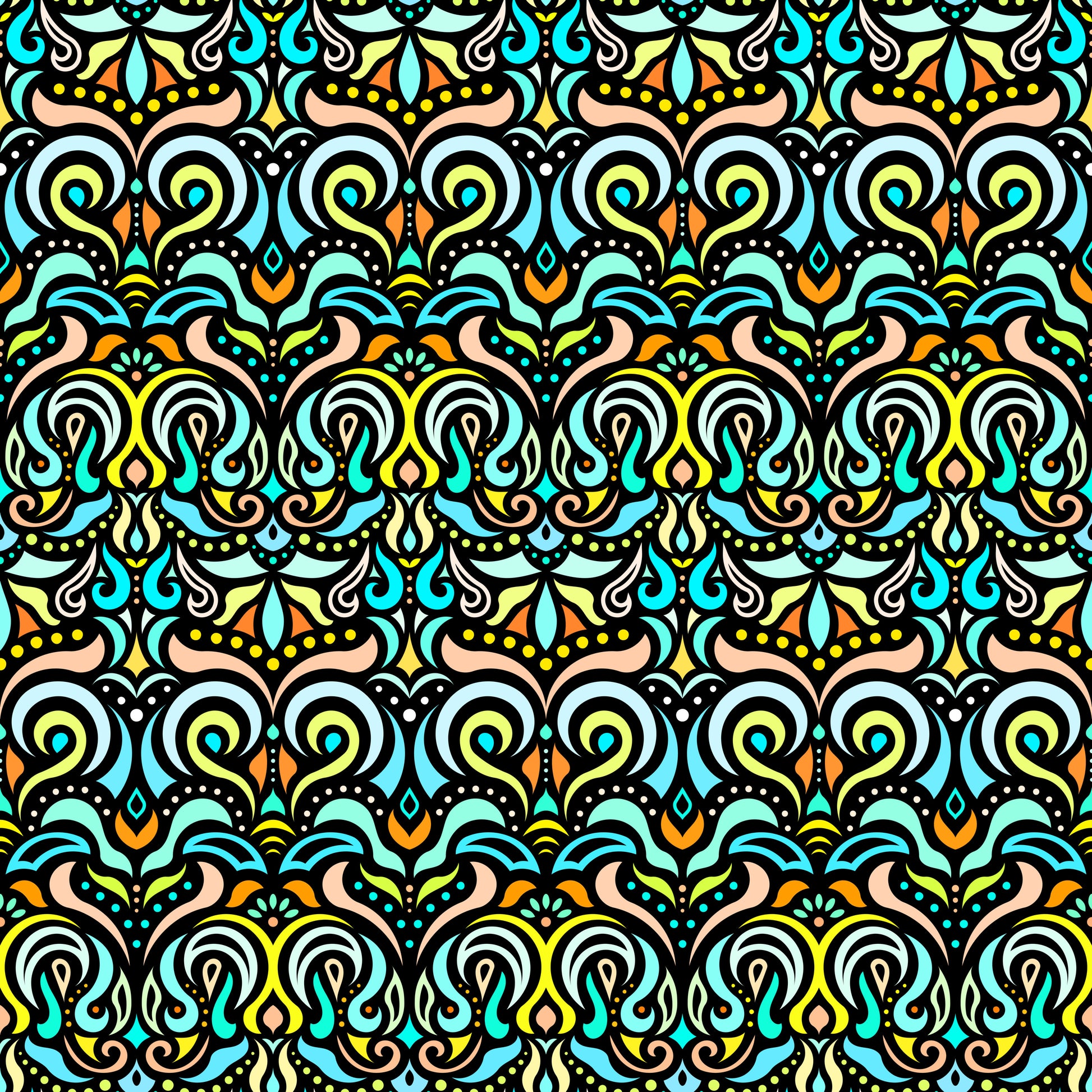 Turquoise - Yellow Abstract Doodle Fabric 1007