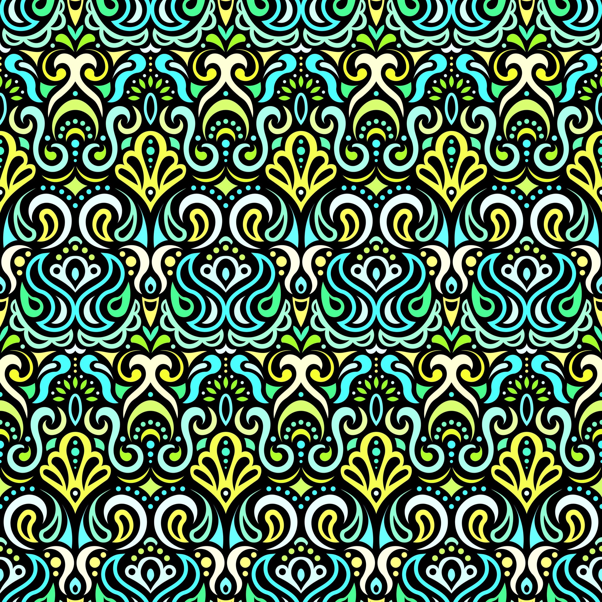 Turquoise - Yellow - Green Abstract Doodle Fabric 1002