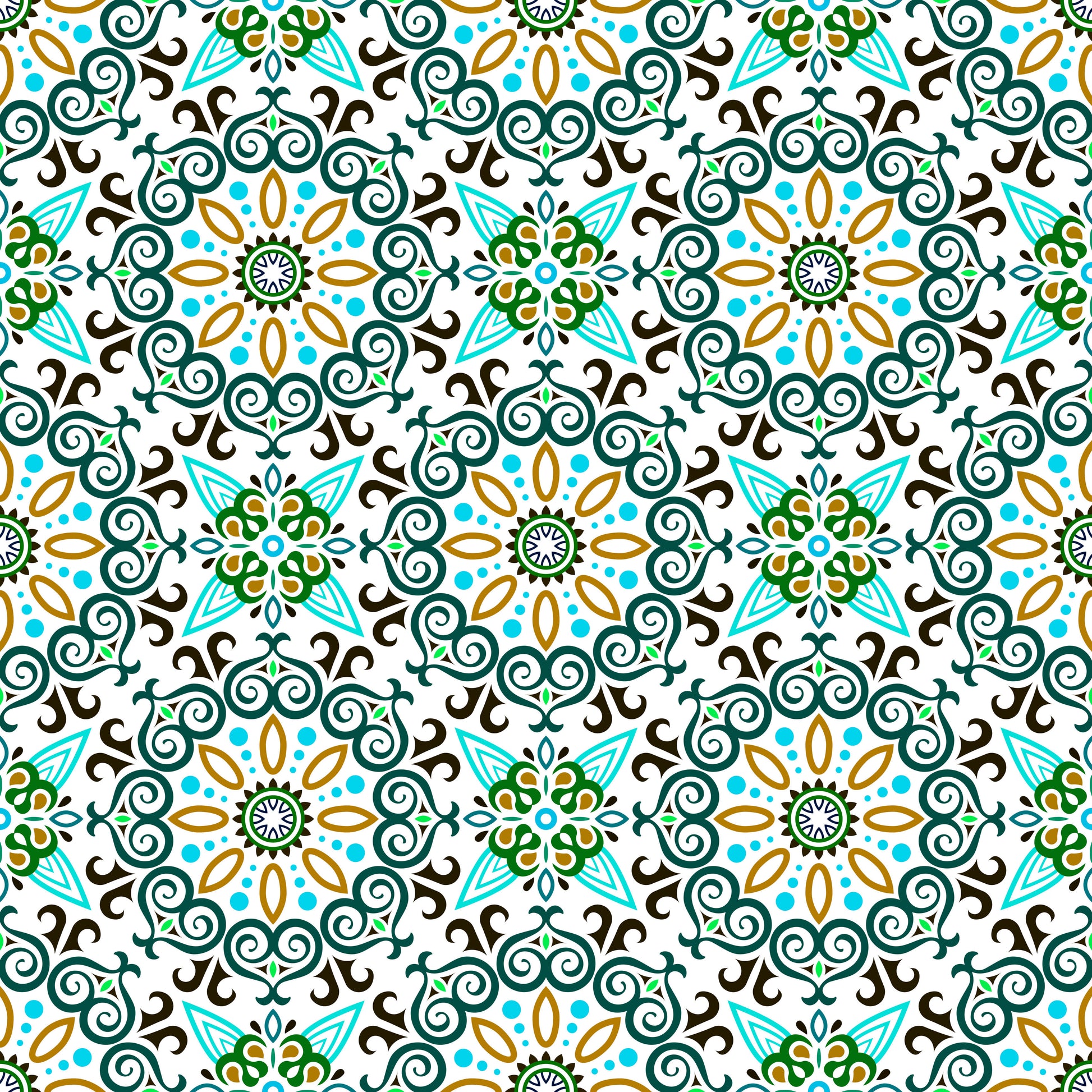 Turquoise - Yellow - Green Mandala Fabric - 138i