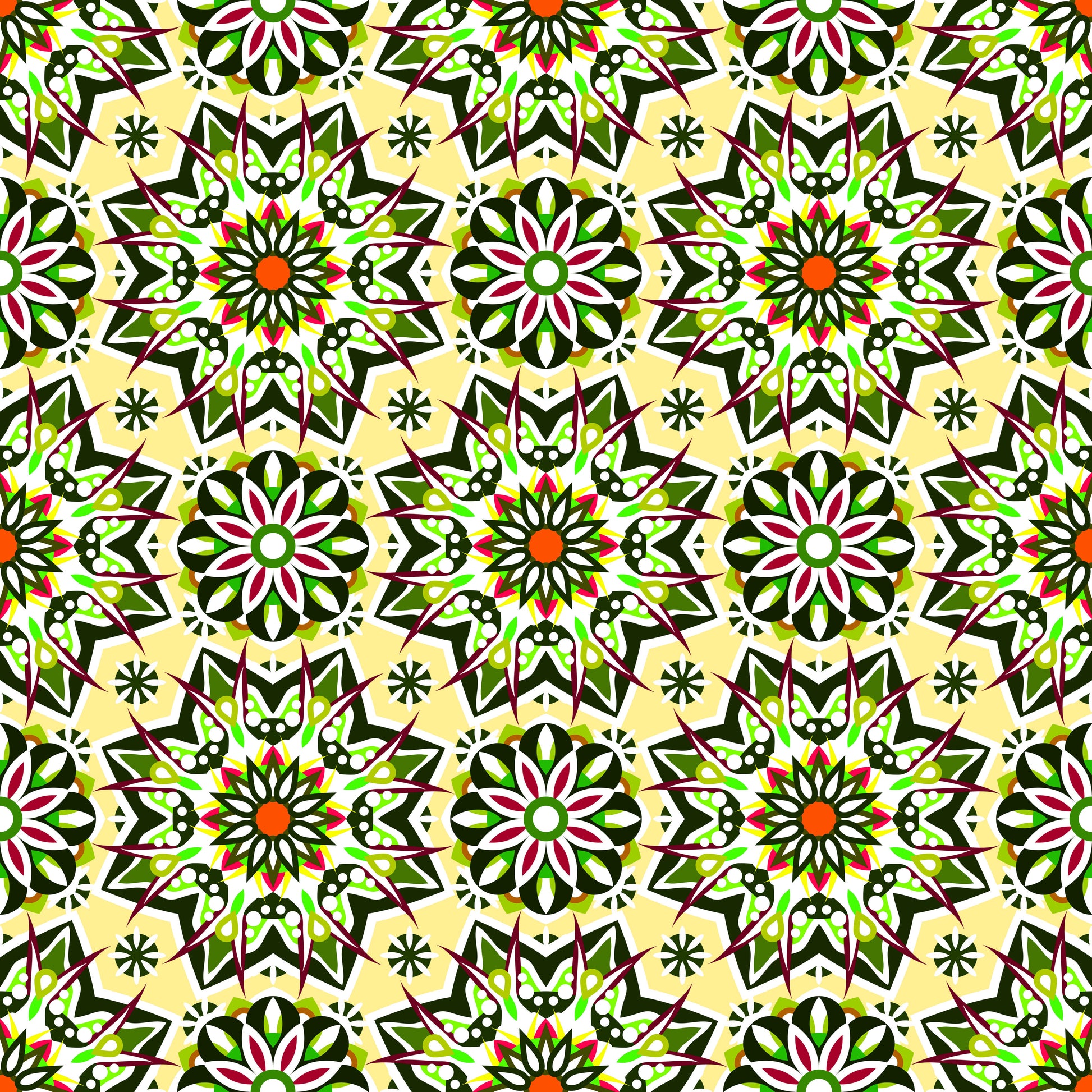 Yellow - Green - Red Mandala Fabric - 122i