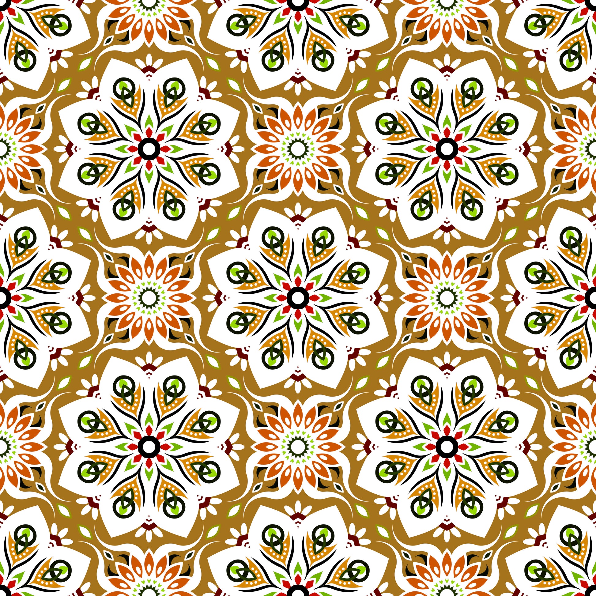 Yellow - Orange - Green Mandala Fabric - 236i