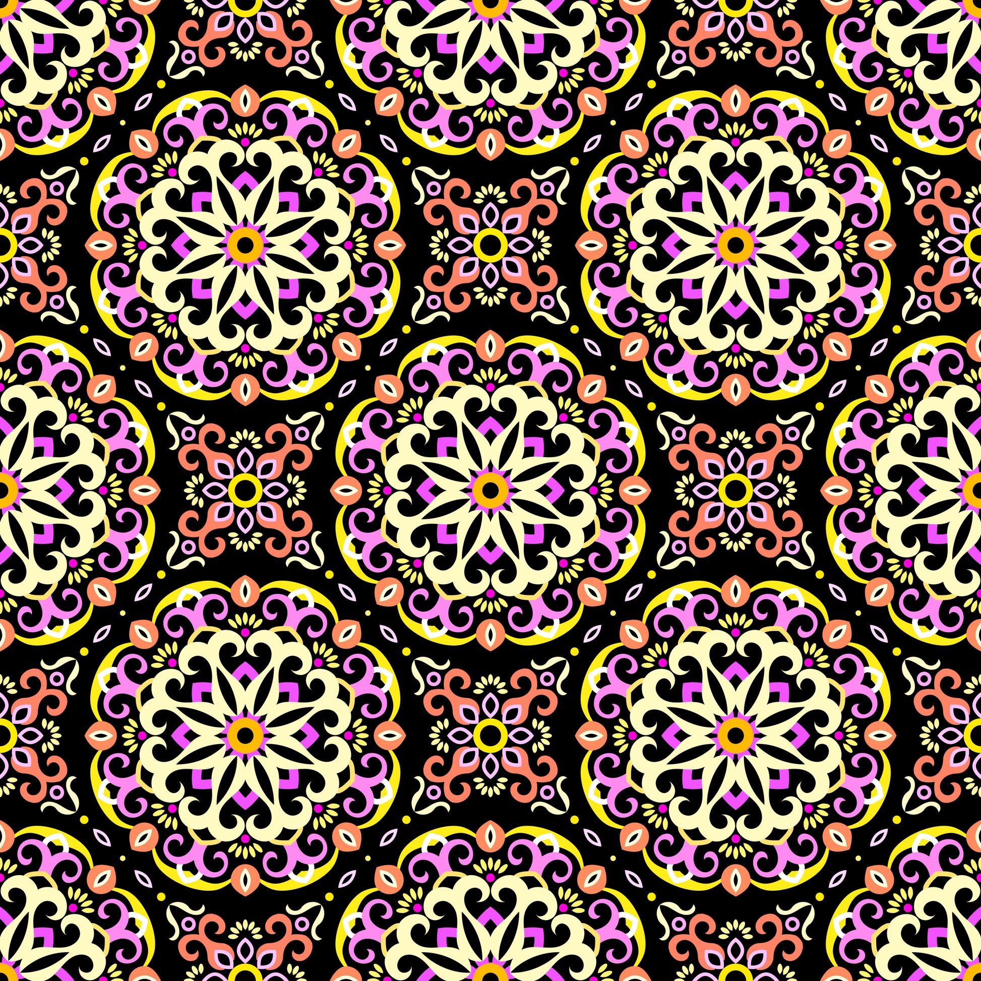 Yellow - Orange - Pink Mandala Fabric - 188