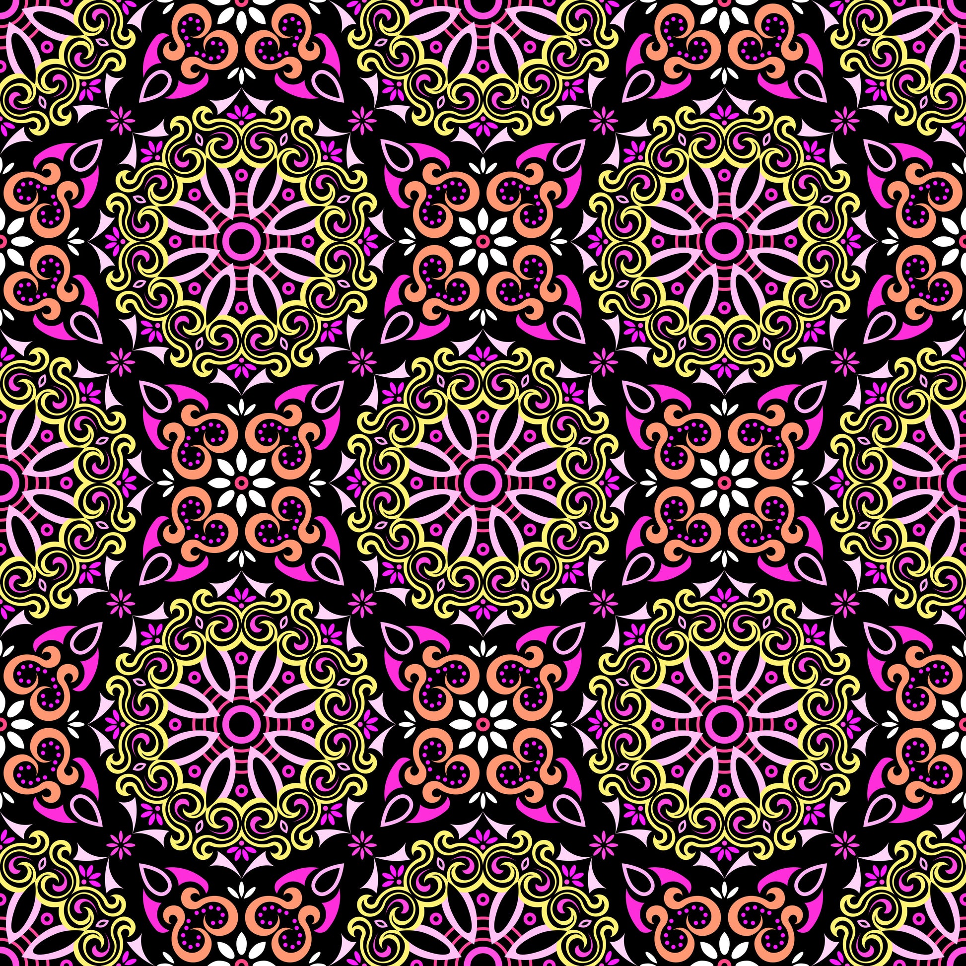 Yellow - Pink - Orange Mandala Fabric - 166