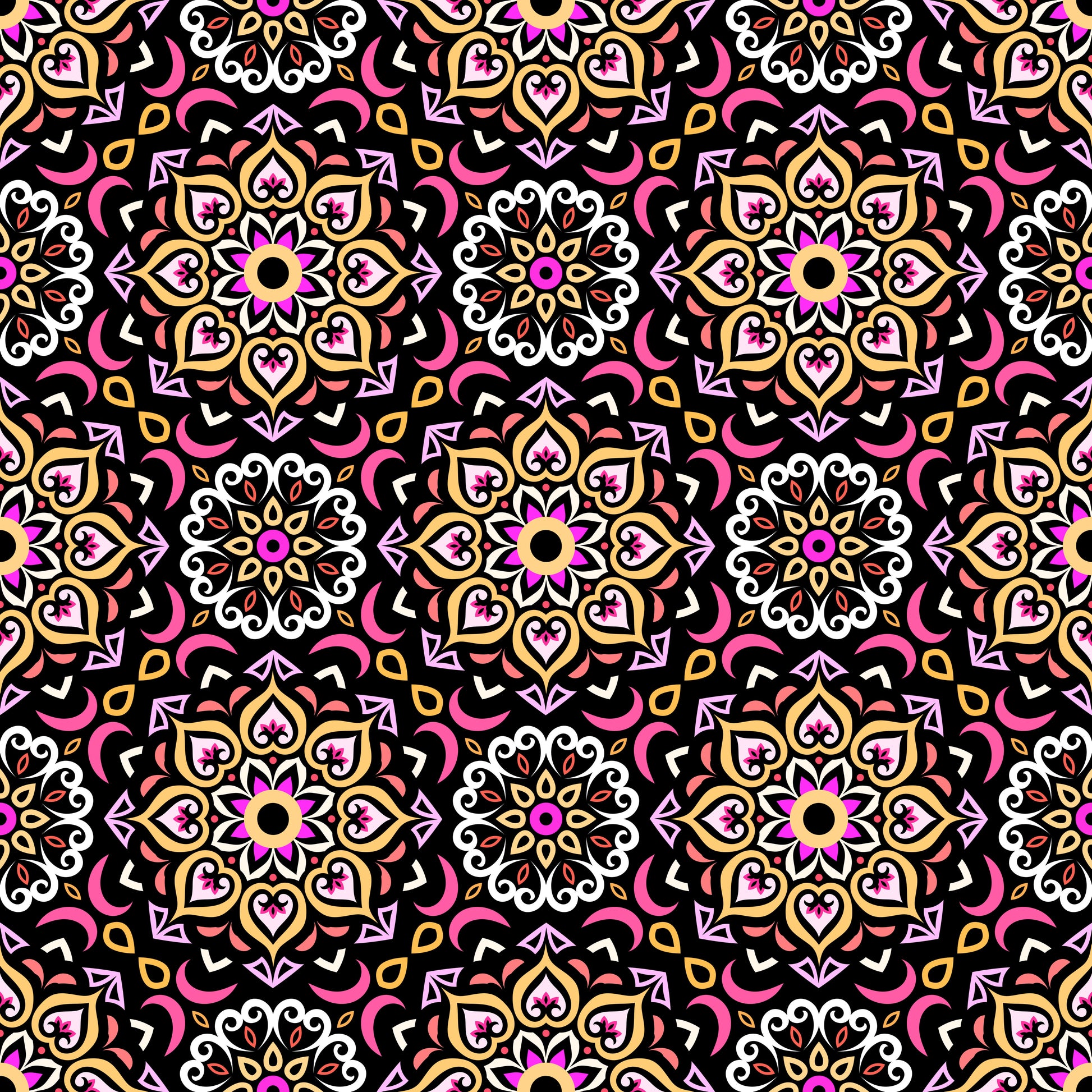 Yellow - Pink - Orange Mandala Fabric - 213
