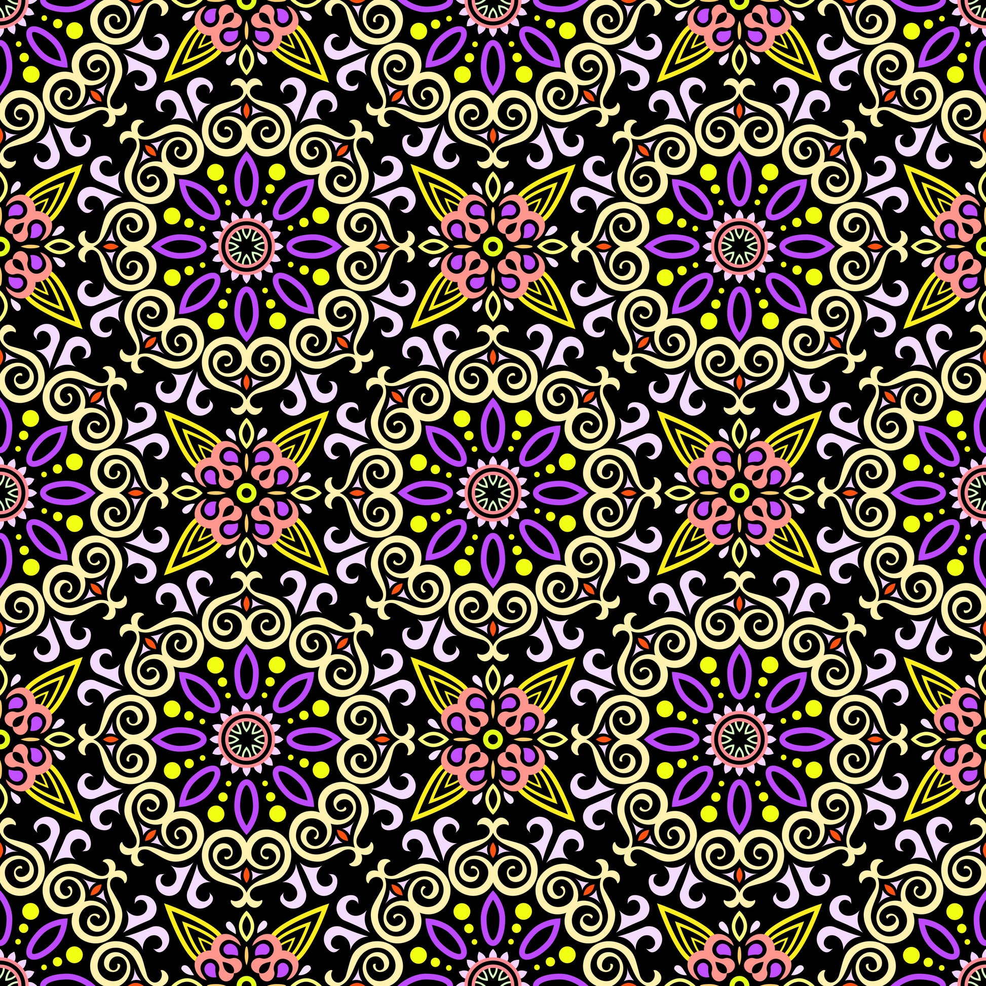 Yellow - Purple - Orange Mandala Fabric - 138