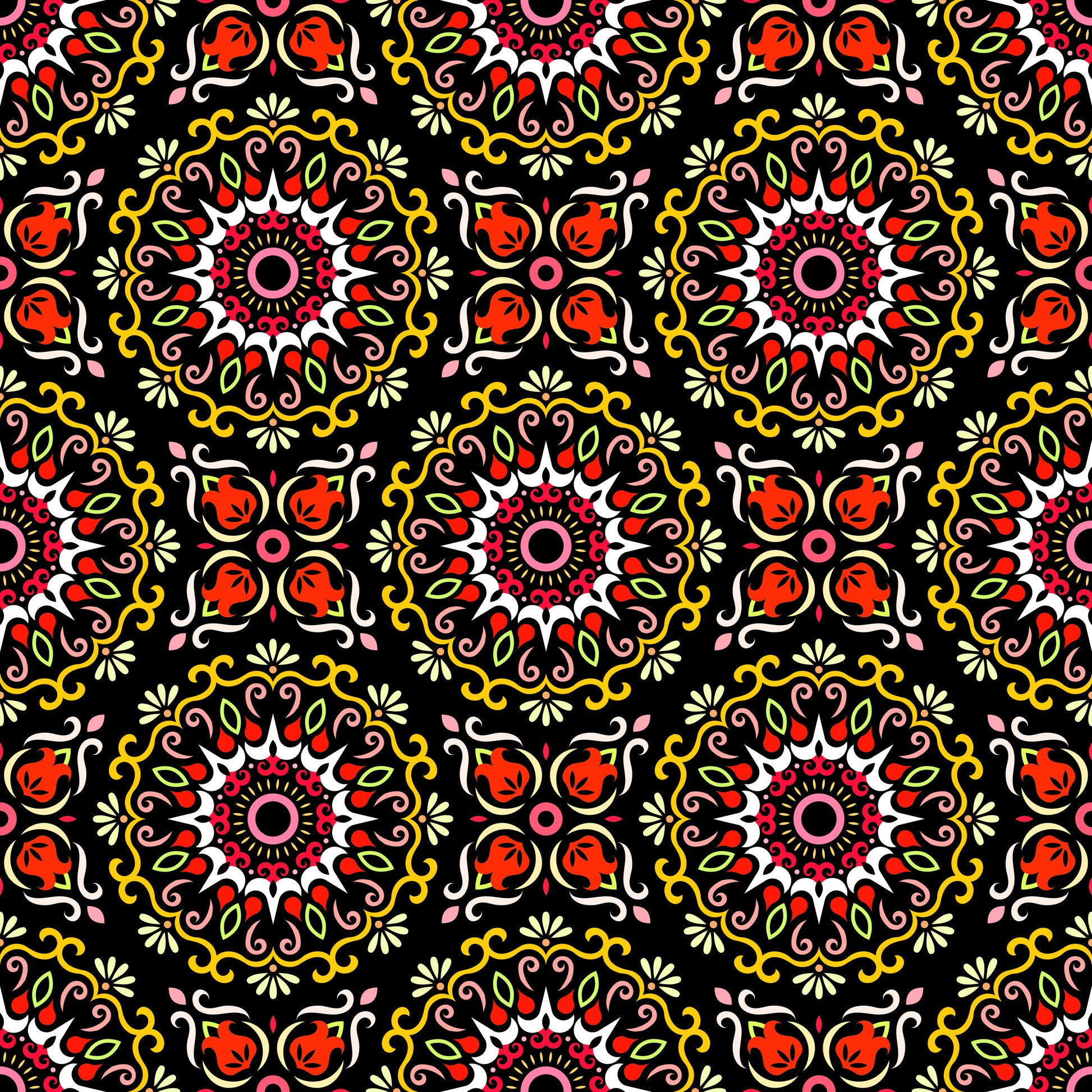 Yellow - Red Mandala Fabric - 174