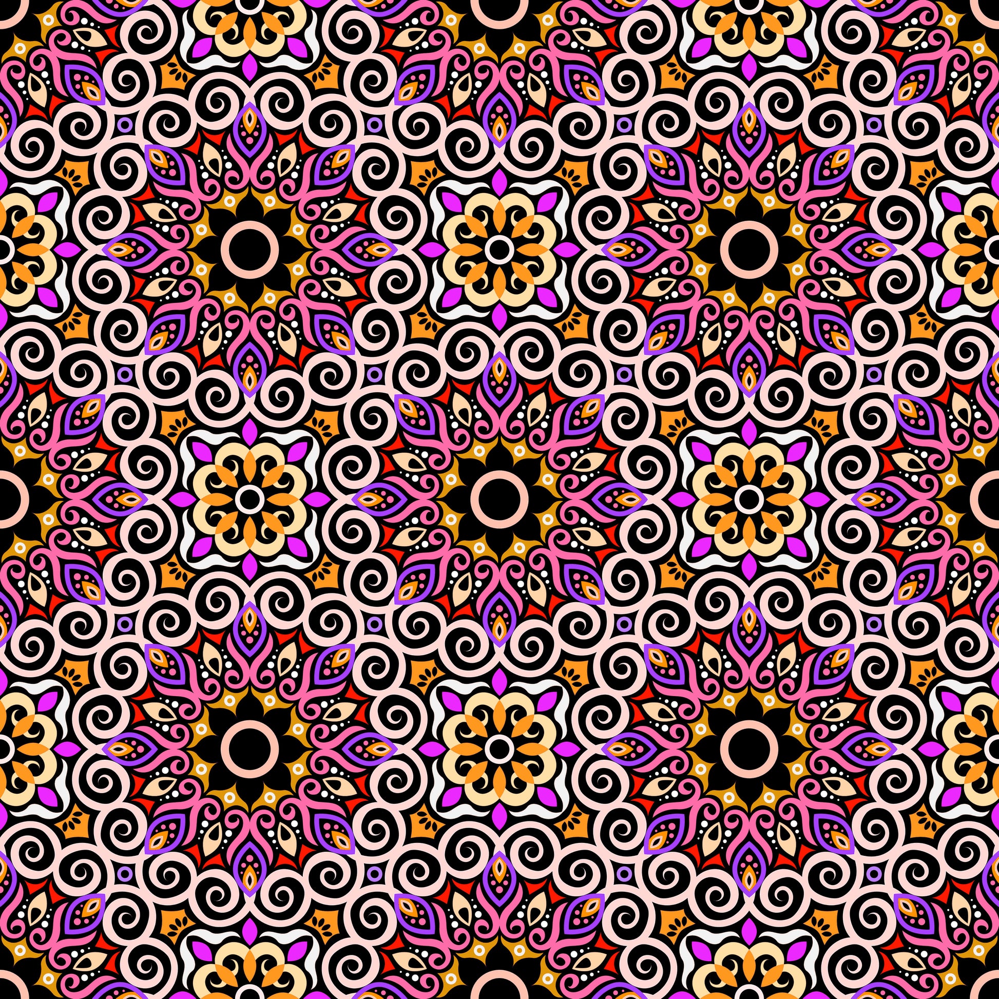 Yellow - Red - Purple Mandala Fabric - 125